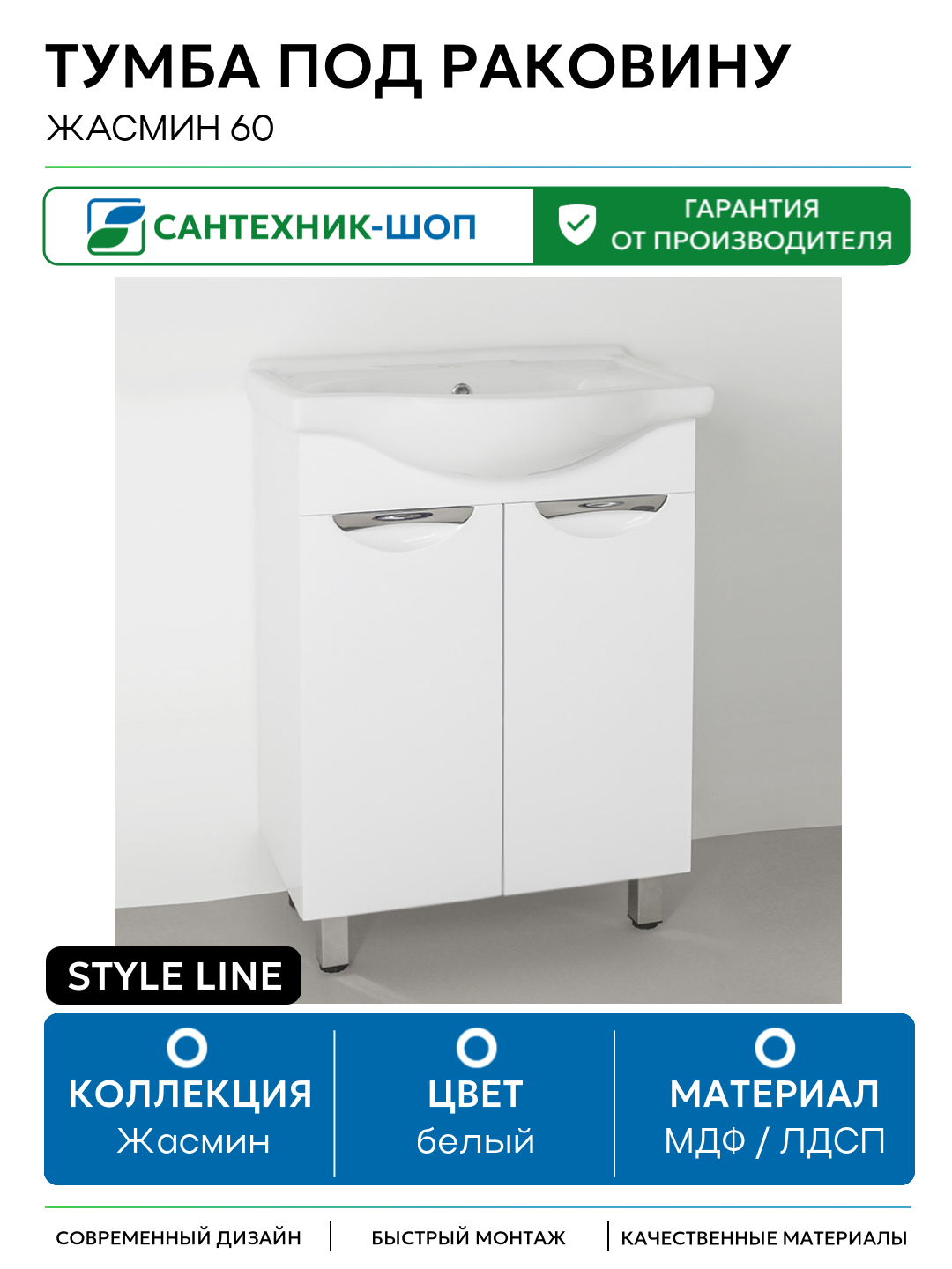 Тумба под раковину Style Line Жасмин 60 Белый глянец МДФ / ЛДСП белый с дверками: сравнение цен, характеристики, фото, актуальное наличие и цены.