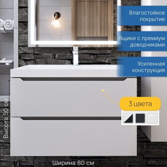 Тумба под раковину Uperwood для ванной подвесная Tanos 80х45х50 см, белая/графит: сравнение цен, характеристики, фото, актуальное наличие и цены.
