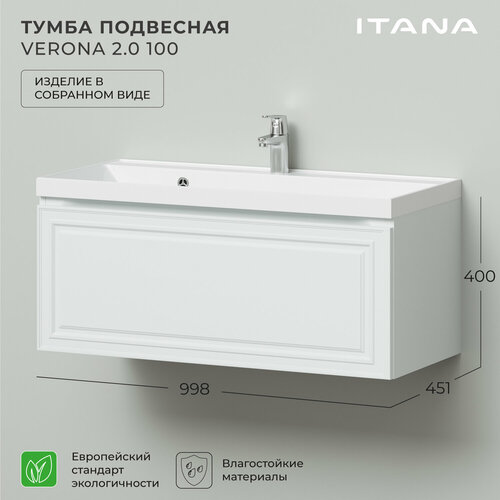 Купить Тумба под раковину в ванную Итана Verona 2.0 100 998х451х400 Эмаль Белый матовый // под умывальник мебельный Итана Clarissa 100 с доставкой по всей России. Тумба под раковину в ванную Итана Verona 2.0 100 998х451х400 Эмаль Белый матовый // под умывальник мебельный Итана Clarissa 100: сравнение цен, характеристики, фото, актуальное наличие и цены.
