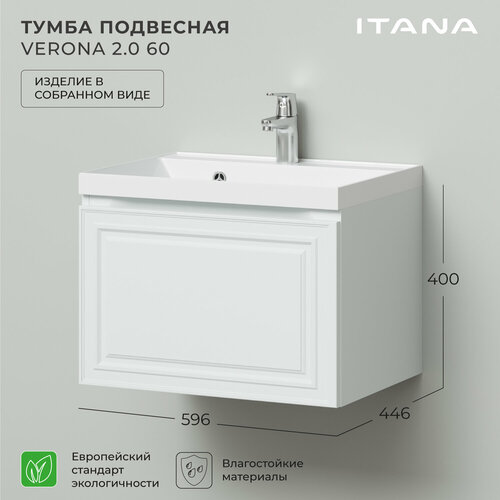 Купить Тумба под раковину в ванную Итана Verona 2.0 60 596х446х400 Эмаль Белый матовый // под умывальник мебельный Итана Clarissa 60 с доставкой по всей России. Тумба под раковину в ванную Итана Verona 2.0 60 596х446х400 Эмаль Белый матовый // под умывальник мебельный Итана Clarissa 60: сравнение цен, характеристики, фото, актуальное наличие и цены.