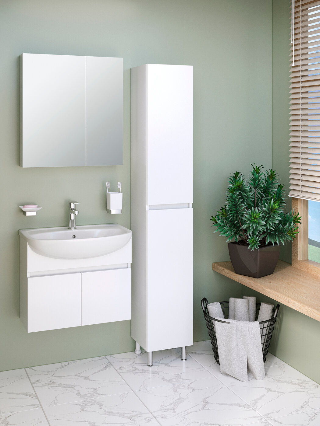 тумба под раковину - 1 шт., раковина - 1 шт., смеситель - 1 шт., выпуск - 1шт.