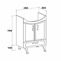 тумба под раковину в собранном виде - 1шт., комплект ручек - 1 шт., комплект ножек - 1 шт., паспорт изделия - 1 шт.