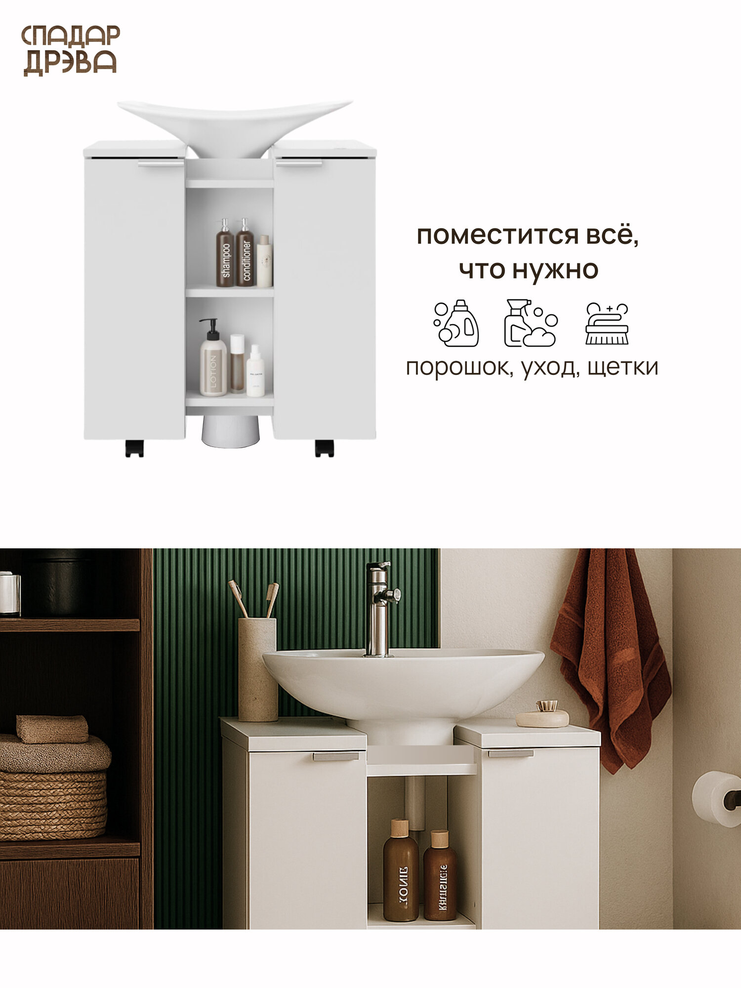 Тумба под раковину в ванную напольная, СпадарДрэва, мебель для ванной комнаты, 600x425x650 мм, ЛДСП: сравнение цен, характеристики, фото, актуальное наличие и цены.