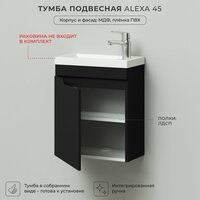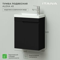 Купить Тумба под раковину в ванную, тумба без раковины для ванной Итана Alexa 45 445х247х520 подвесная левая узкая Черный с доставкой по всей России.