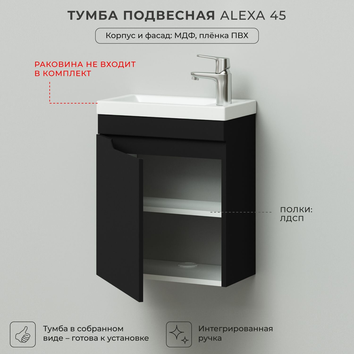 Тумба под раковину в ванную, тумба без раковины для ванной Итана Alexa 45 445х247х520 подвесная левая узкая Черный: сравнение цен, характеристики, фото, актуальное наличие и цены.