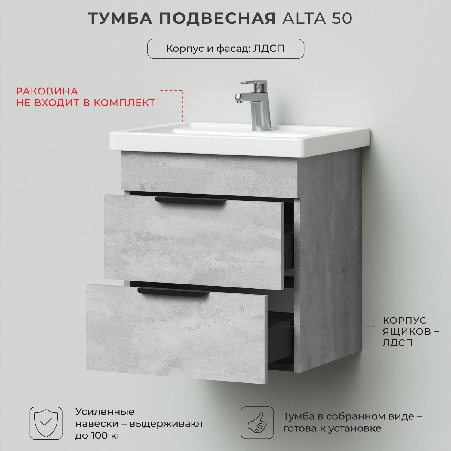 Купить Tумба под раковину в ванную / Тумба для ванной Итана Alta 50 460х380х500 Бетонный Камень подвесная// под Умывальник мебельный Kirovit «Фостер-500» с доставкой по всей России. Tумба под раковину в ванную / Тумба для ванной Итана Alta 50 460х380х500 Бетонный Камень подвесная// под Умывальник мебельный Kirovit «Фостер-500»: сравнение цен, характеристики, фото, актуальное наличие и цены.