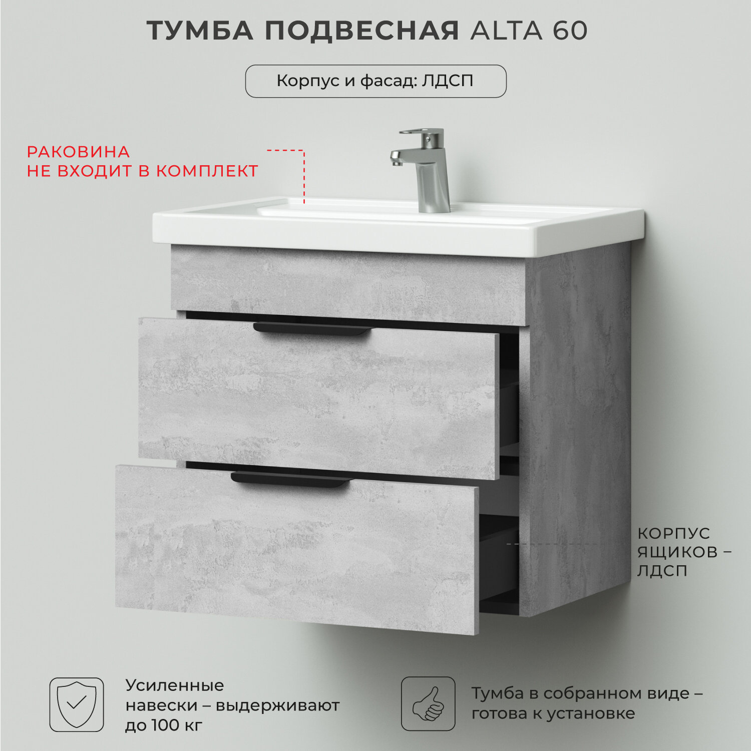 Купить Tумба под раковину в ванную / Тумба для ванной Итана Alta 60 555х380х500 Бетонный Камень подвесная // под Умывальник мебельный Kirovit «Фостер-600» с доставкой по всей России. Tумба под раковину в ванную / Тумба для ванной Итана Alta 60 555х380х500 Бетонный Камень подвесная // под Умывальник мебельный Kirovit «Фостер-600»: сравнение цен, характеристики, фото, актуальное наличие и цены.