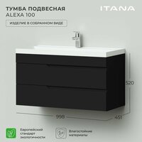 Купить Тумба под раковину в ванную, тумба для ванной Итана Alexa 100 998х451х520 подвесная Черный с доставкой по всей России.