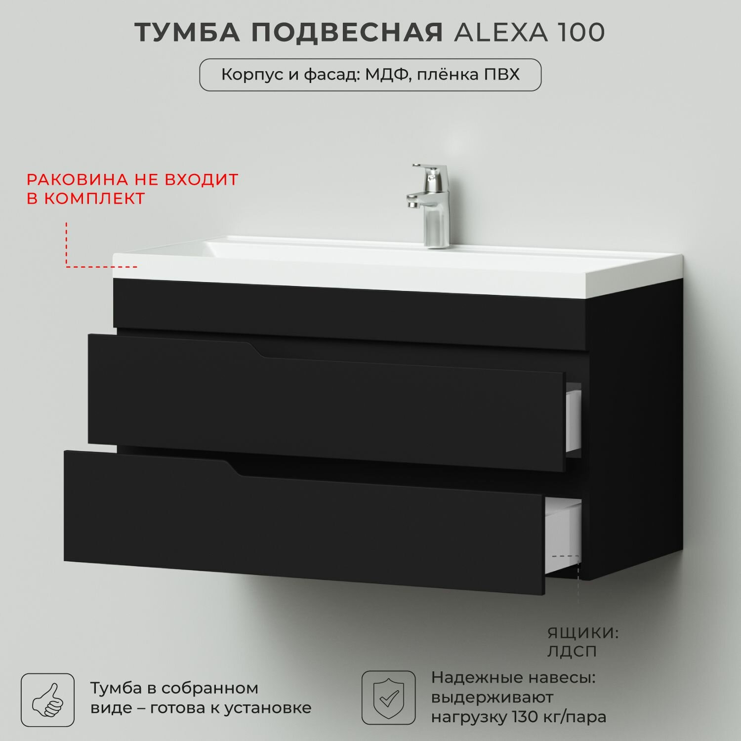 Тумба под раковину в ванную, тумба для ванной Итана Alexa 100 998х451х520 подвесная Черный: сравнение цен, характеристики, фото, актуальное наличие и цены.