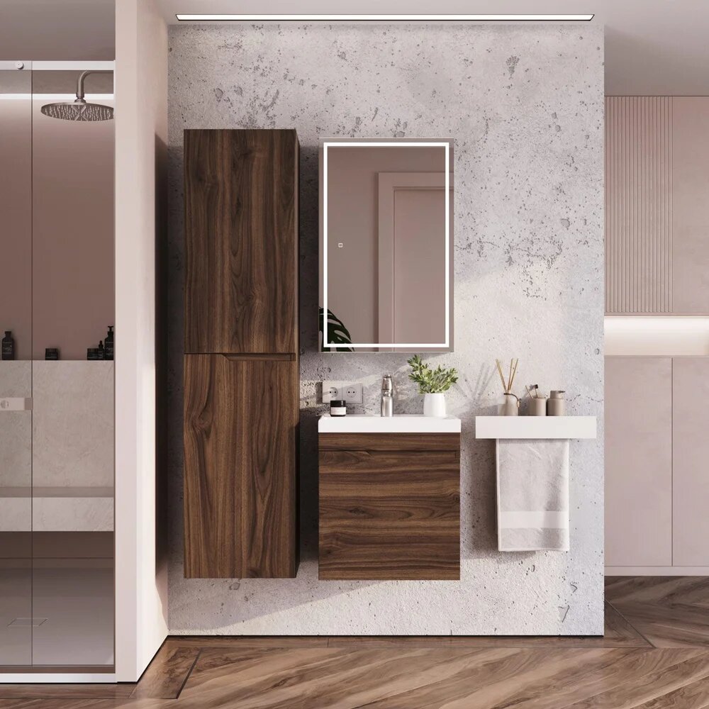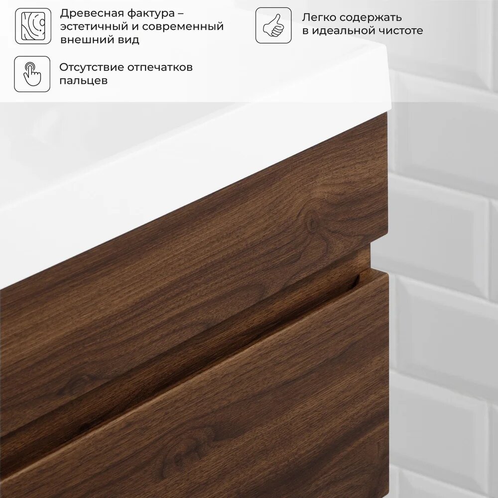 Тумба под раковину в ванную, тумба для ванной Итана Alexa 50 491х342х520 подвесная левый Орех Пекан шоколад