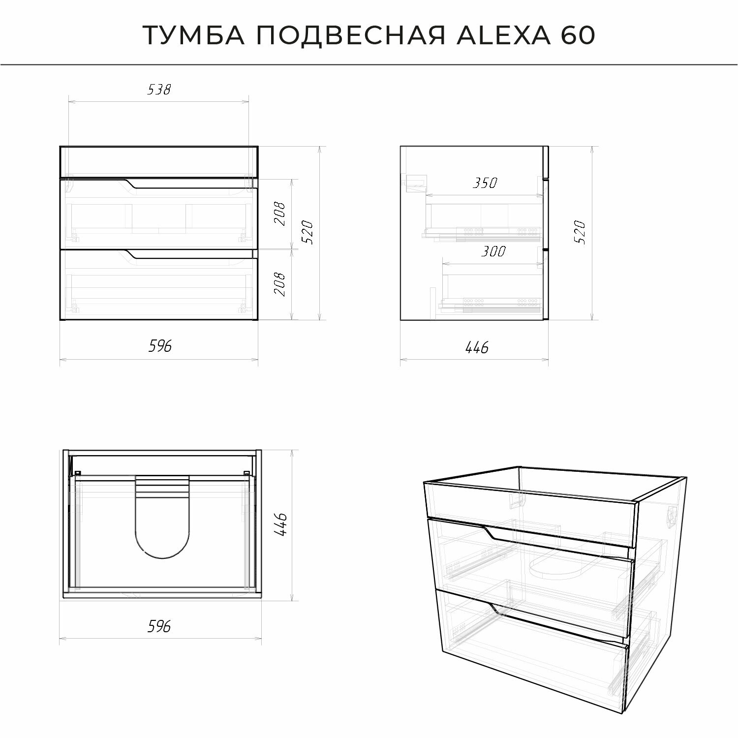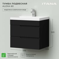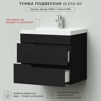 Купить Тумба под раковину в ванную, тумба для ванной Итана Alexa 60 596х446х520 подвесная Черный с доставкой по всей России.