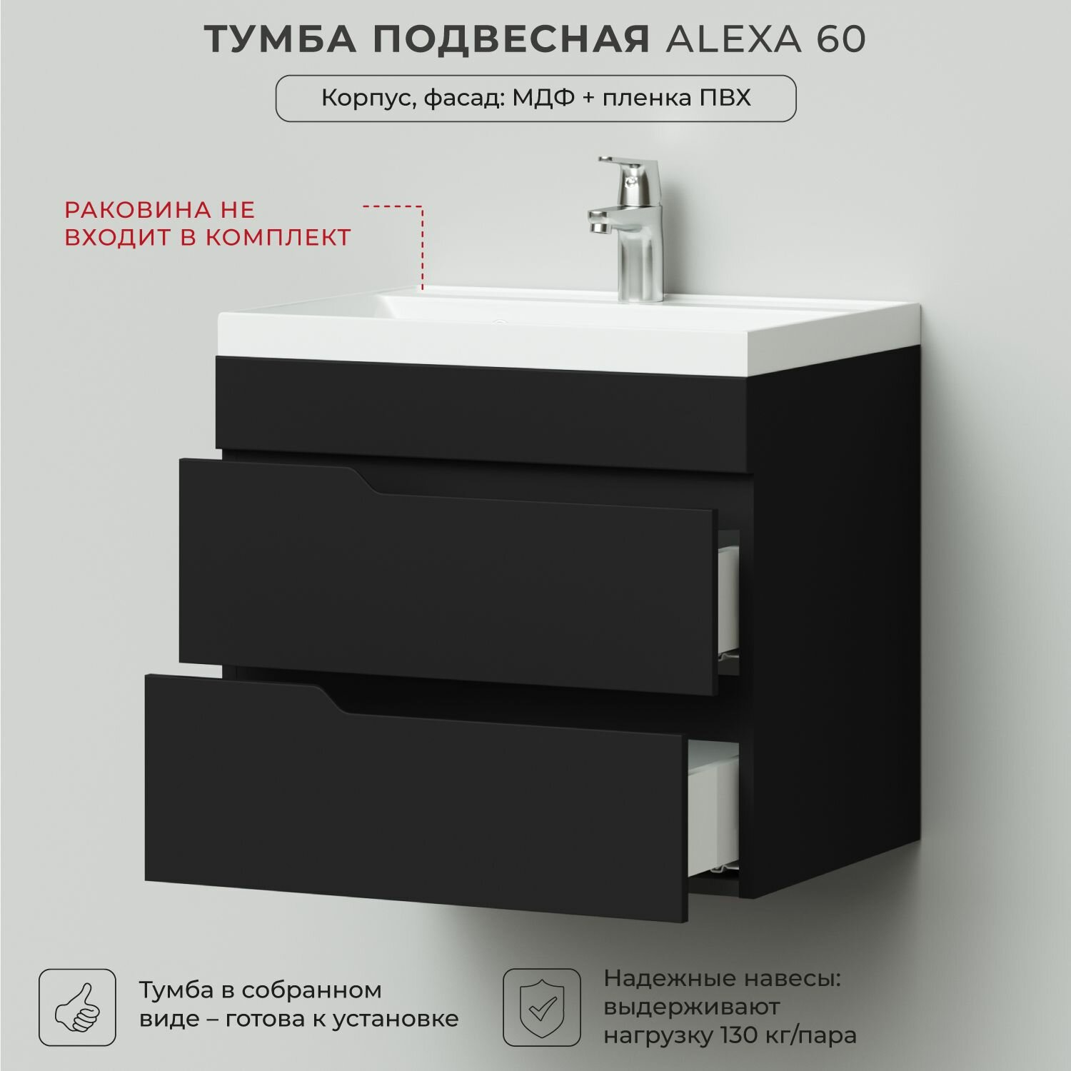 Тумба под раковину в ванную, тумба для ванной Итана Alexa 60 596х446х520 подвесная Черный: сравнение цен, характеристики, фото, актуальное наличие и цены.