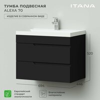 Купить Тумба под раковину в ванную, тумба для ванной Итана Alexa 70 694х446х520 подвесная Черный с доставкой по всей России.