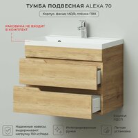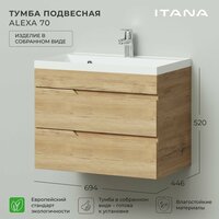 Купить Тумба под раковину в ванную, тумба для ванной Итана Alexa 70 694х446х520 подвесная Дуб Мавелла Голд с доставкой по всей России.