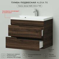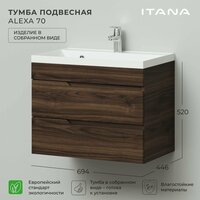 Купить Тумба под раковину в ванную, тумба для ванной Итана Alexa 70 694х446х520 подвесная Орех Пекан шоколад с доставкой по всей России.