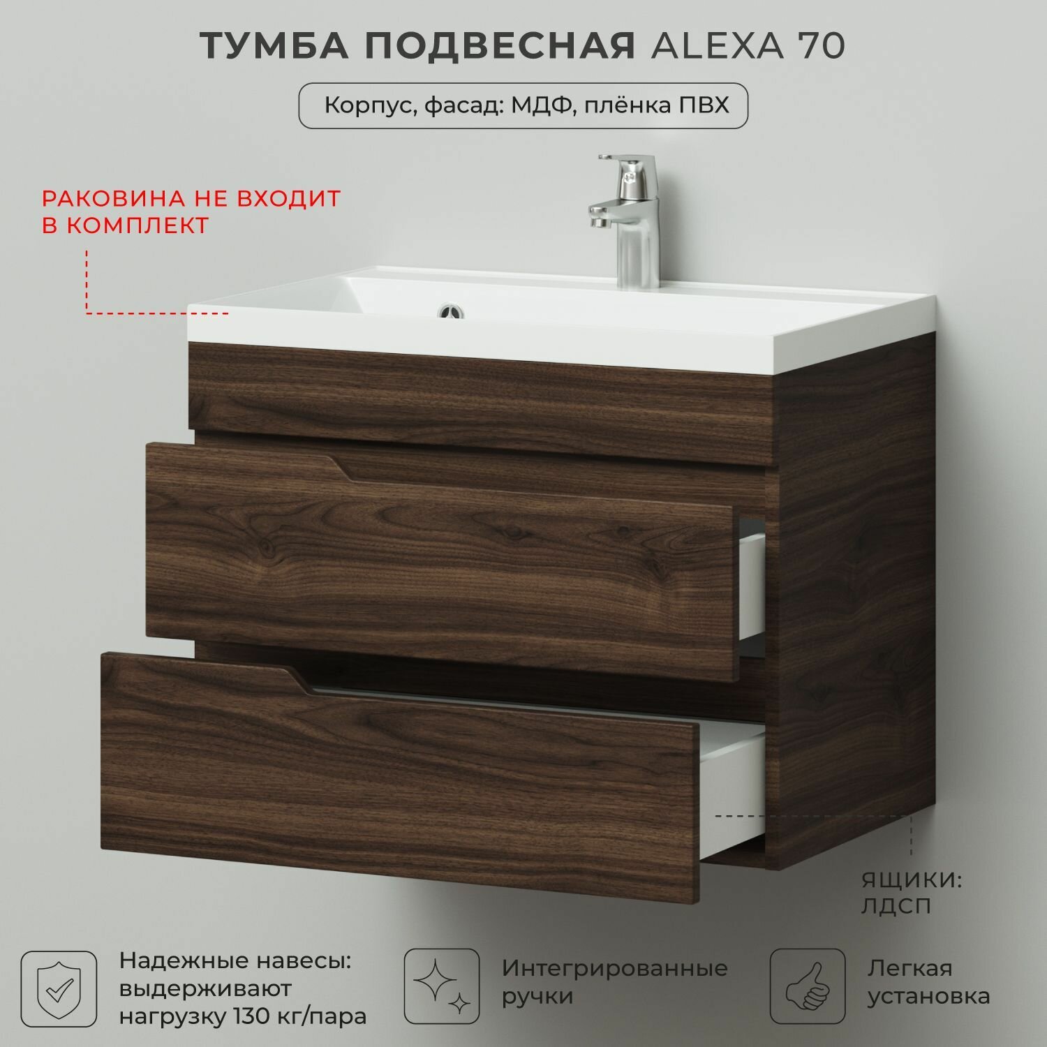 Тумба под раковину в ванную, тумба для ванной Итана Alexa 70 694х446х520 подвесная Орех Пекан шоколад: сравнение цен, характеристики, фото, актуальное наличие и цены.