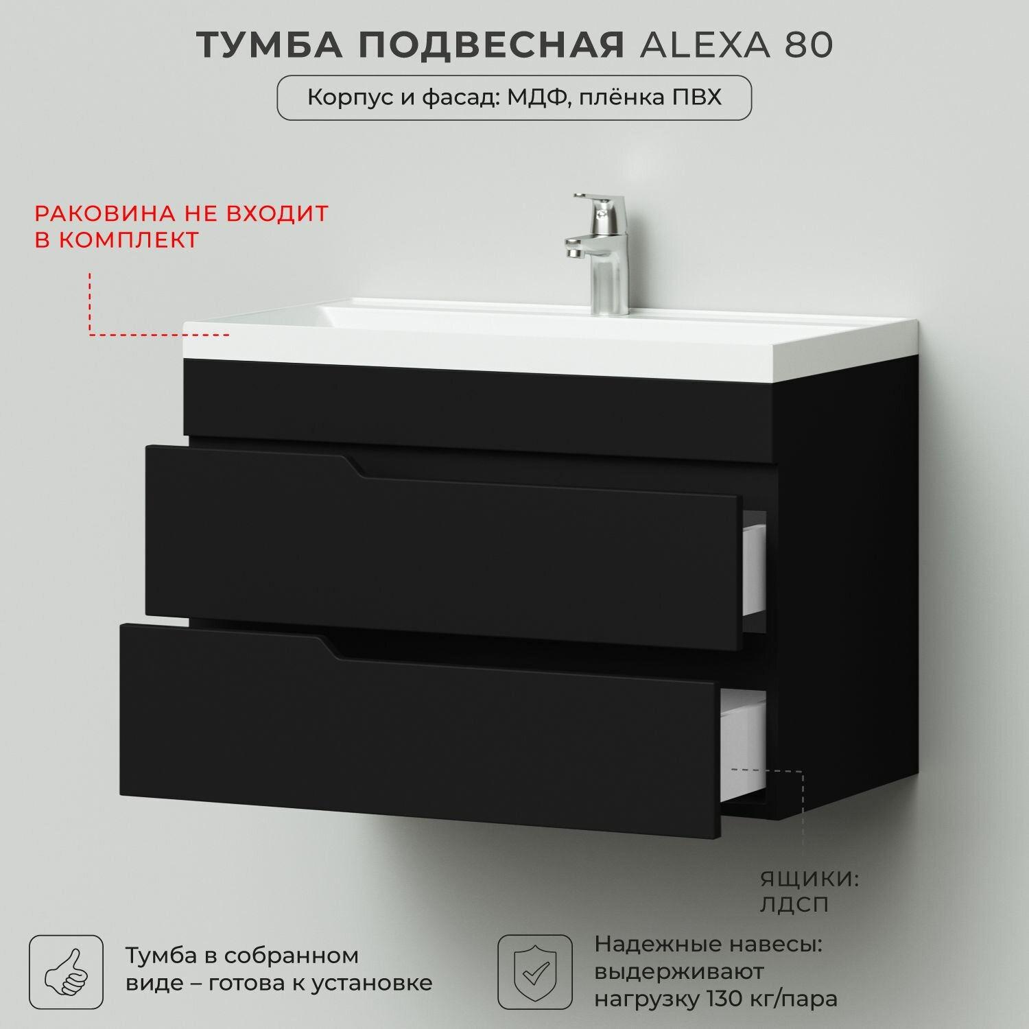 Купить Тумба под раковину в ванную, тумба для ванной Итана Alexa 80 796х446х520 подвесная Черный с доставкой по всей России.