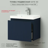 Коллекция Kate - воплотила в себе тренд на фактурные фасады. Идеальный "рубчик" - простое и стильное дизайнерское решение для декорирования фасадов - эта мебель бесспорно станет украшением современной ванной комнаты. Подвесная тумба для ванной выполнена из МДФ и покрыта ПВХ пленкой, что делает её устойчивой к влаге, а значит долговечной. Удобные фрезерованные ручки, качественная фурнитура с доводчиками, вместительность - мы продумали все, чтобы тумба под раковину была не просто красивой, но еще и функциональной, приятной в использовании. Благодаря своей конструкции тумба обеспечивает удобный доступ к раковине и позволяет скрыть коммуникации. Вырез под сифон универсальный, для любого типа. Тумба под раковину в ванную оснащена удобным ящиком для хранения, что позволяет разместить всё необходимое под рукой. Для точного выбора тумбочки под раковину в ванную комнату рекомендуем обратиться к схеме замеров, которая находится в карточке товара, размеры изделия могут отличаться +/-1 см в связи со спецификой производства. Дополнить комплект можно раковиной для ванной Clarissa 50 и другими изделиями из коллекции Kate.