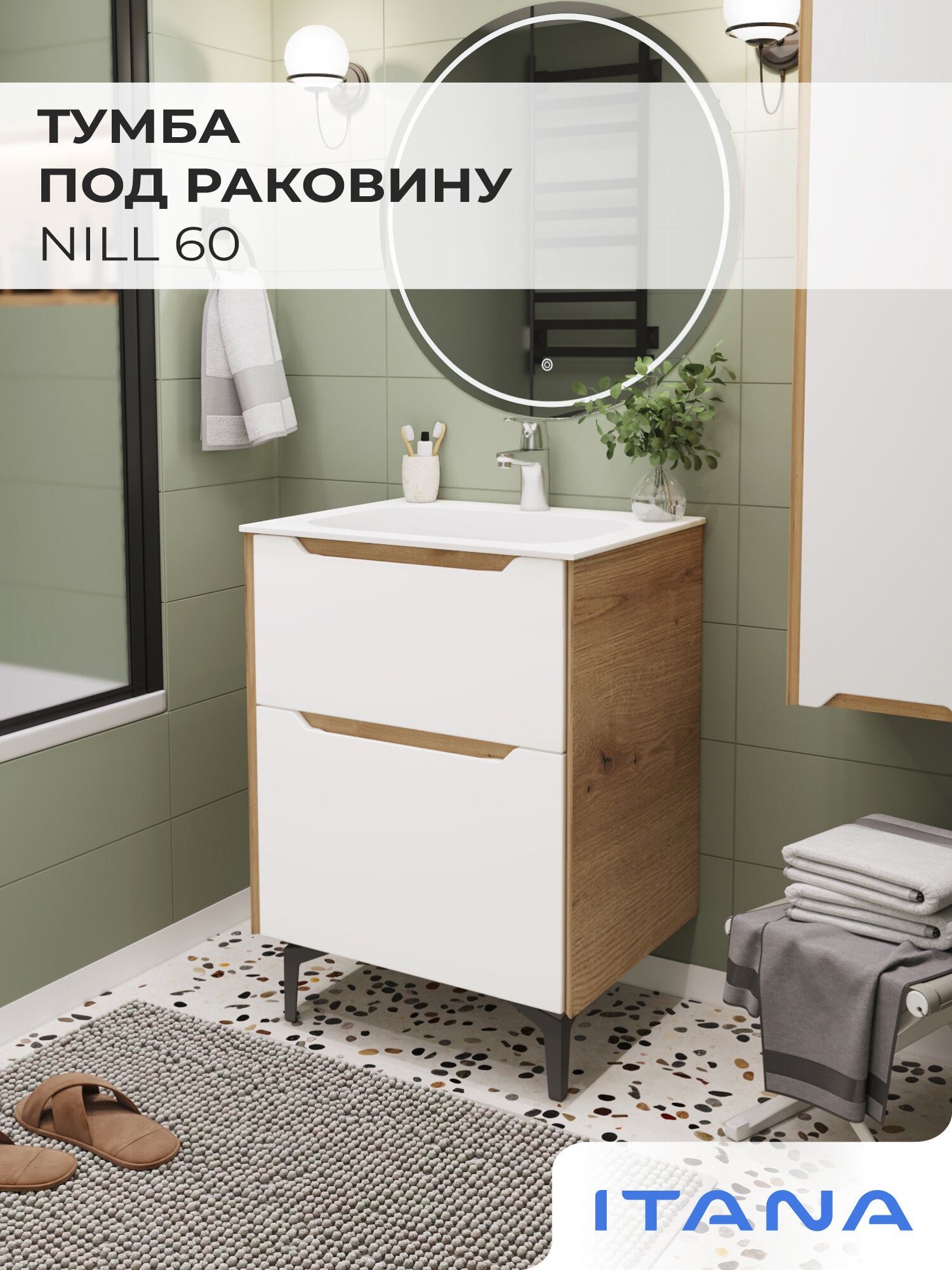 Тумба под раковину в ванную, тумба для ванной Итана Nill 60 600х470х820 напольная Белый глянец: сравнение цен, характеристики, фото, актуальное наличие и цены.