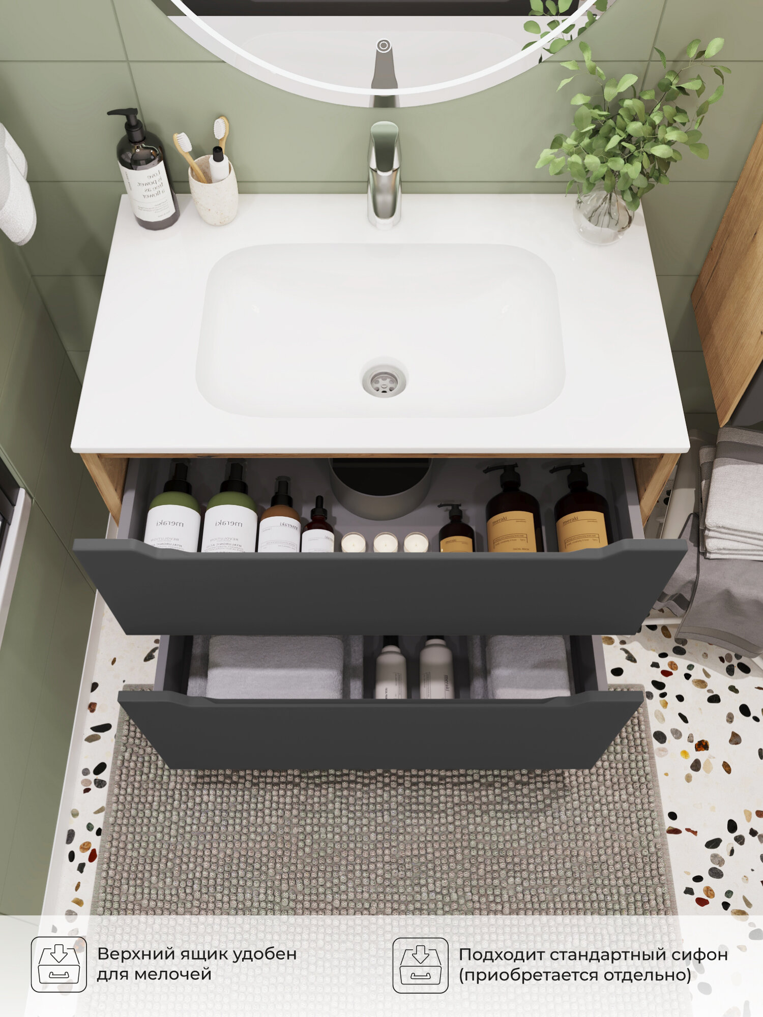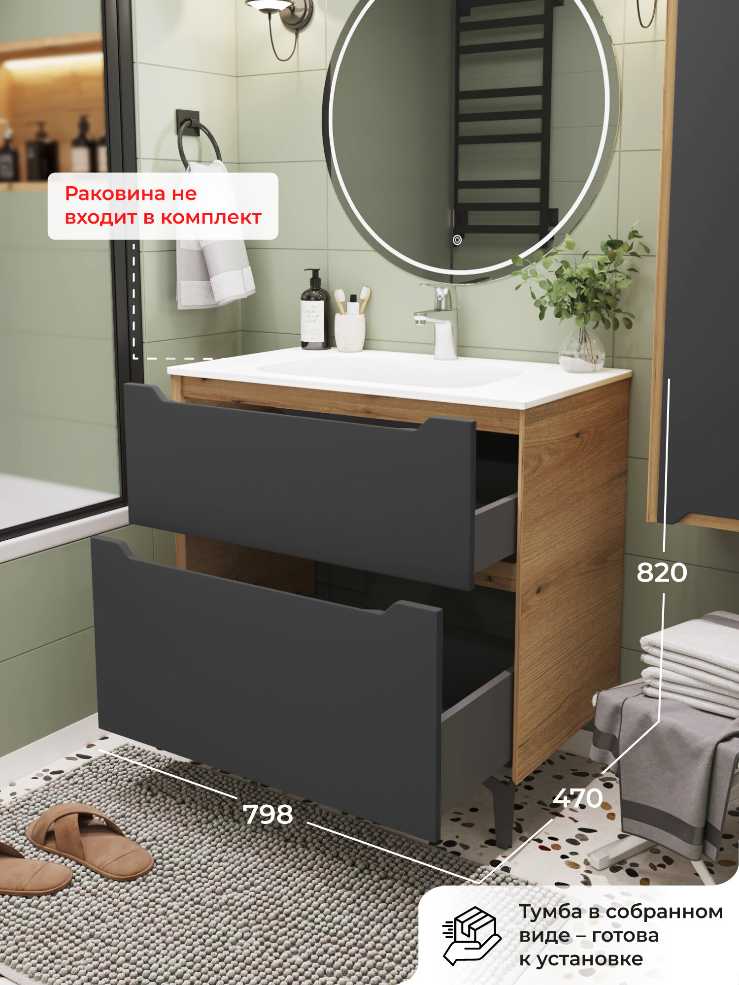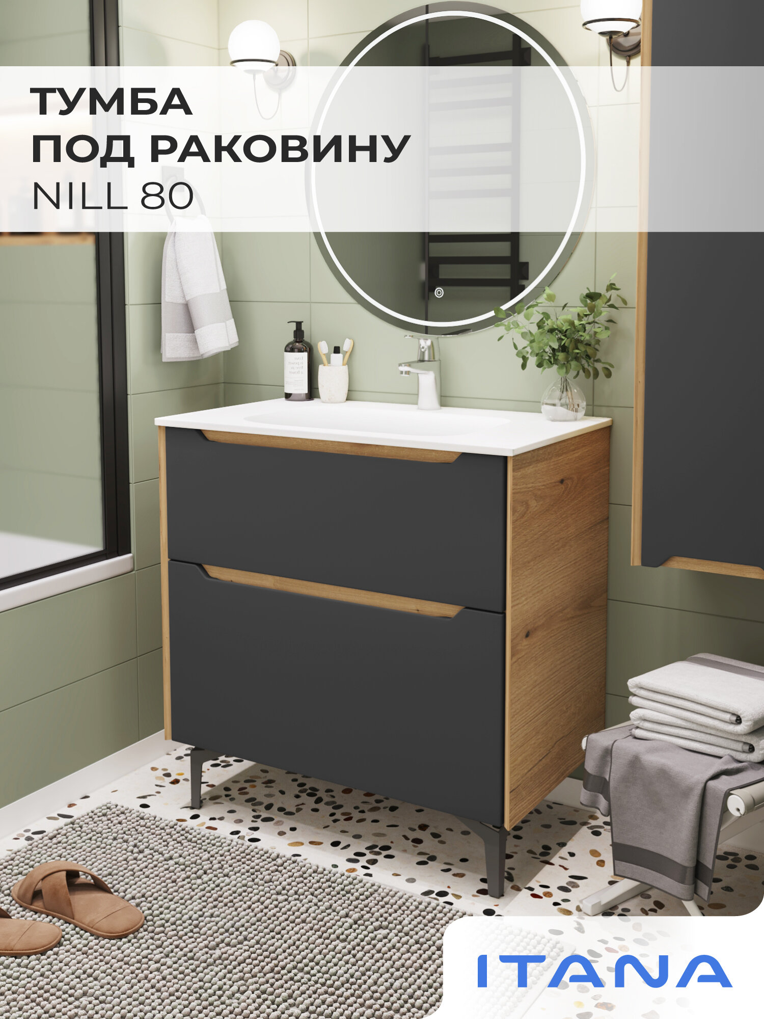 Тумба под раковину в ванную, тумба для ванной Итана Nill 80 798х470х820 напольная Графит: сравнение цен, характеристики, фото, актуальное наличие и цены.