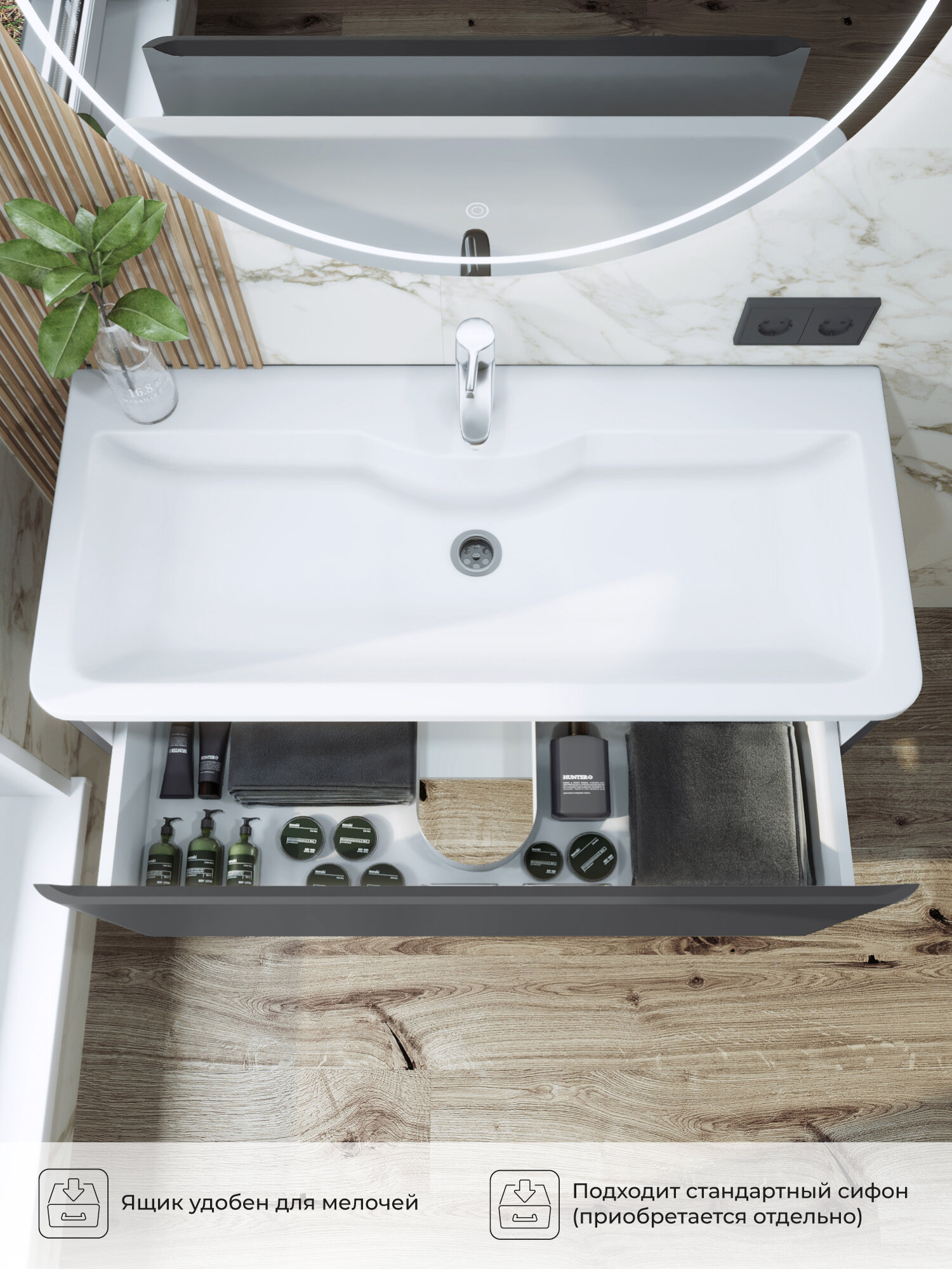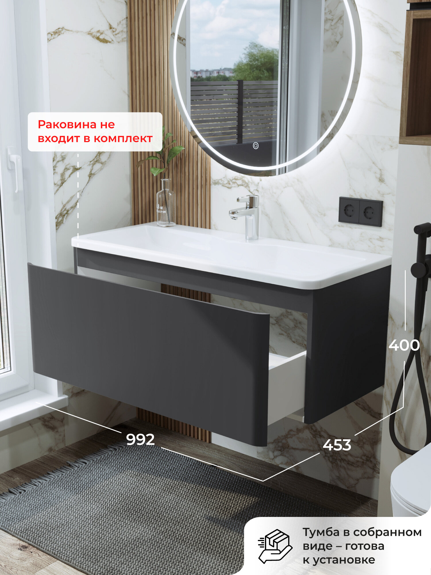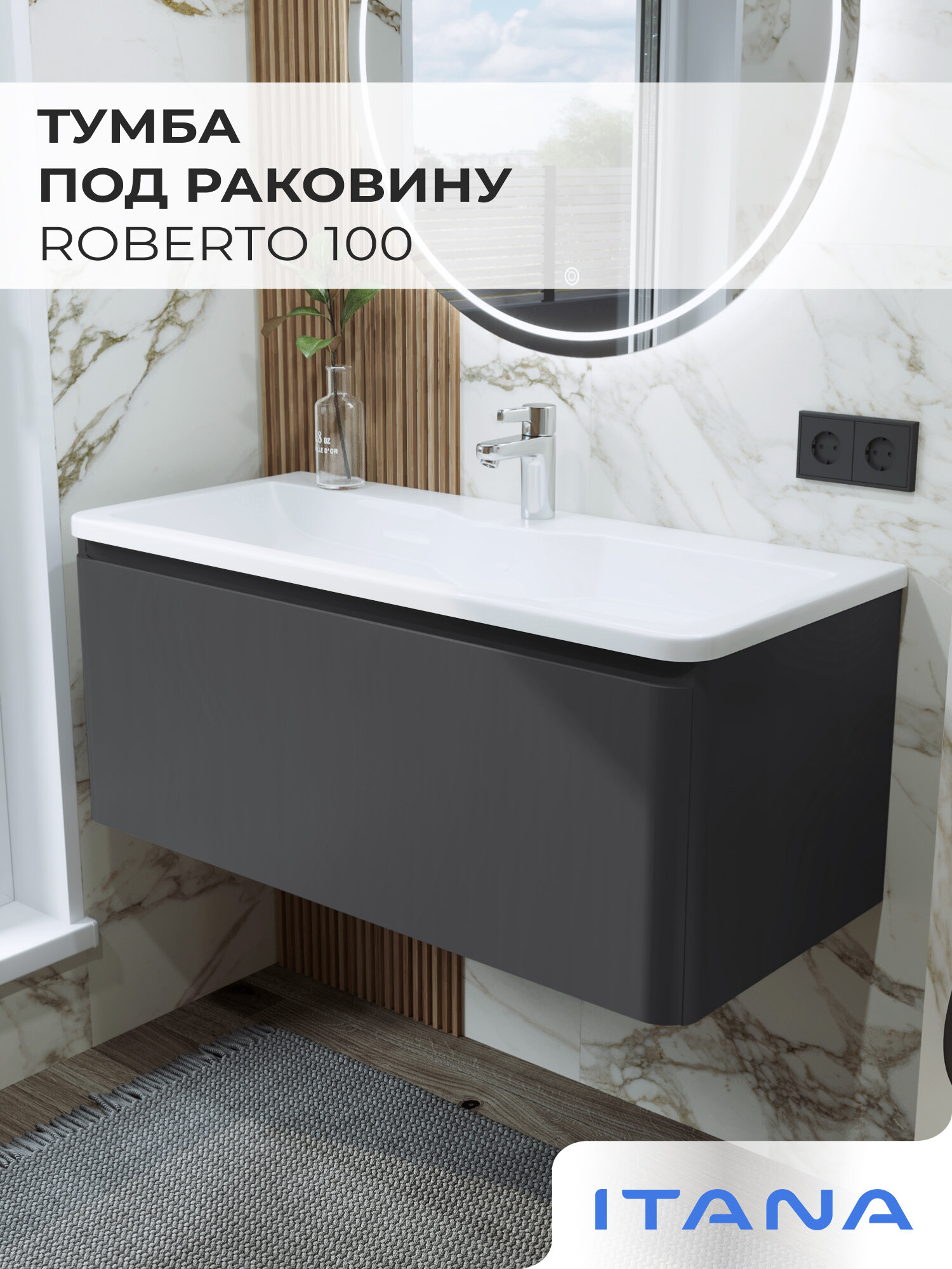 Тумба под раковину в ванную, тумба для ванной Итана Roberto 100 992х453х400 подвесная Графит: сравнение цен, характеристики, фото, актуальное наличие и цены.