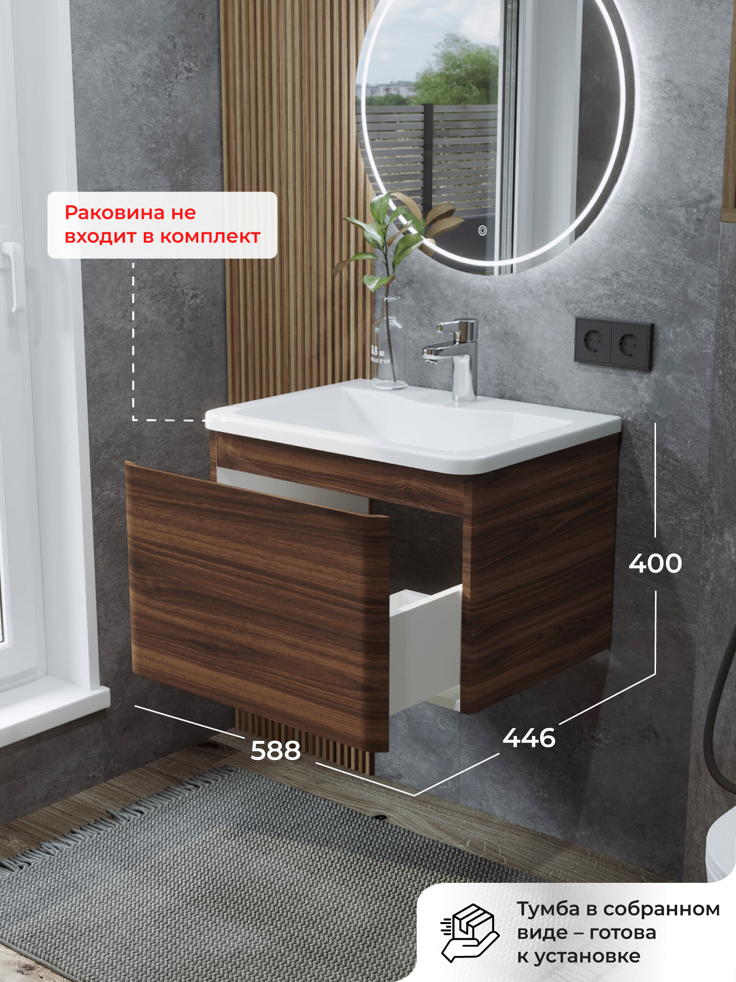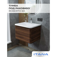 Купить Тумба под раковину в ванную, тумба для ванной Итана Roberto 60 588х446х400 подвесная Орех Пекан Шоколад Стронг с доставкой по всей России.