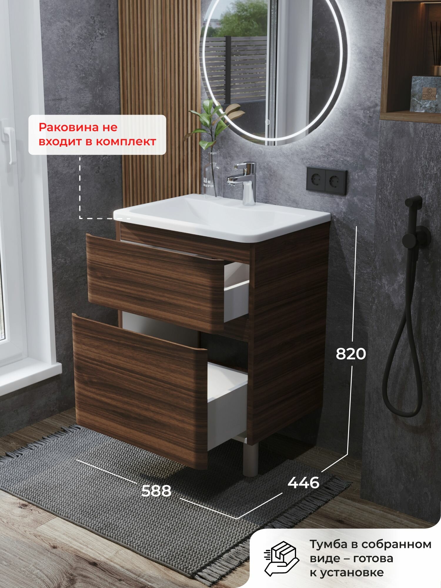 Тумба под раковину в ванную, тумба для ванной Итана Roberto 60 588х446х820 напольная Орех Пекан шоколад: сравнение цен, характеристики, фото, актуальное наличие и цены.
