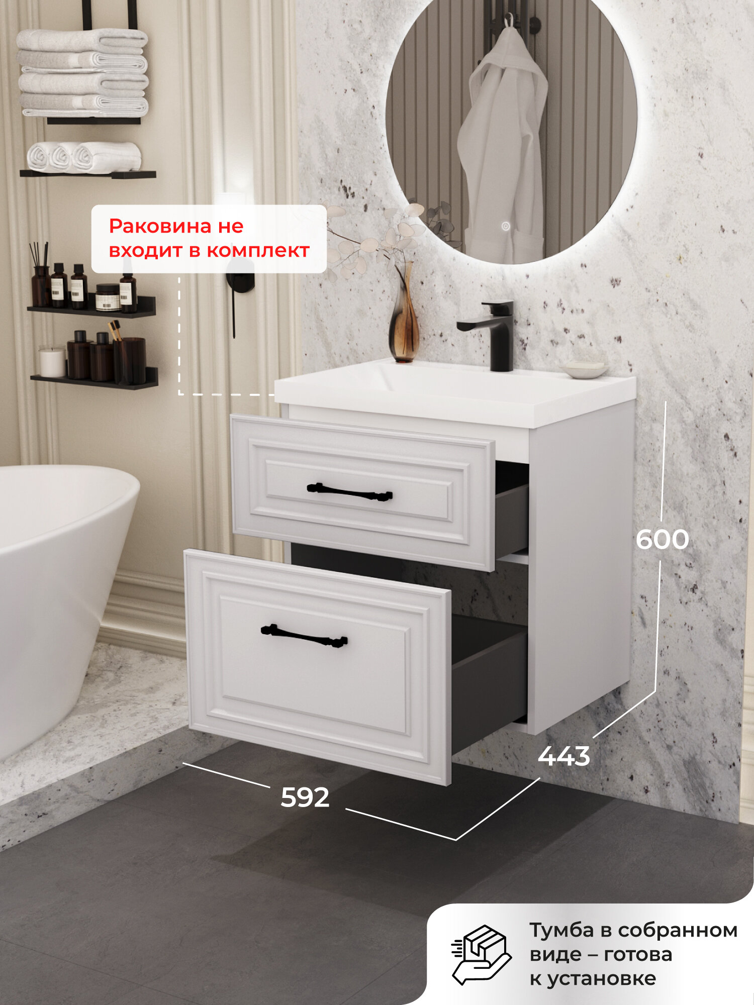 Купить Тумба под раковину в ванную, тумба для ванной Итана Verona 2.0 60 592х443х600 2Я Керамик с доставкой по всей России.