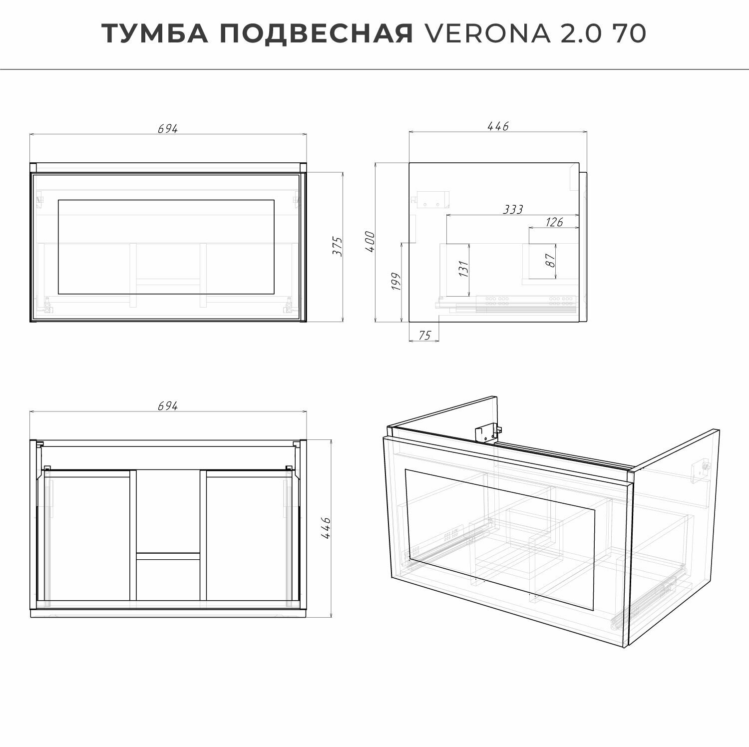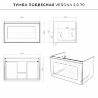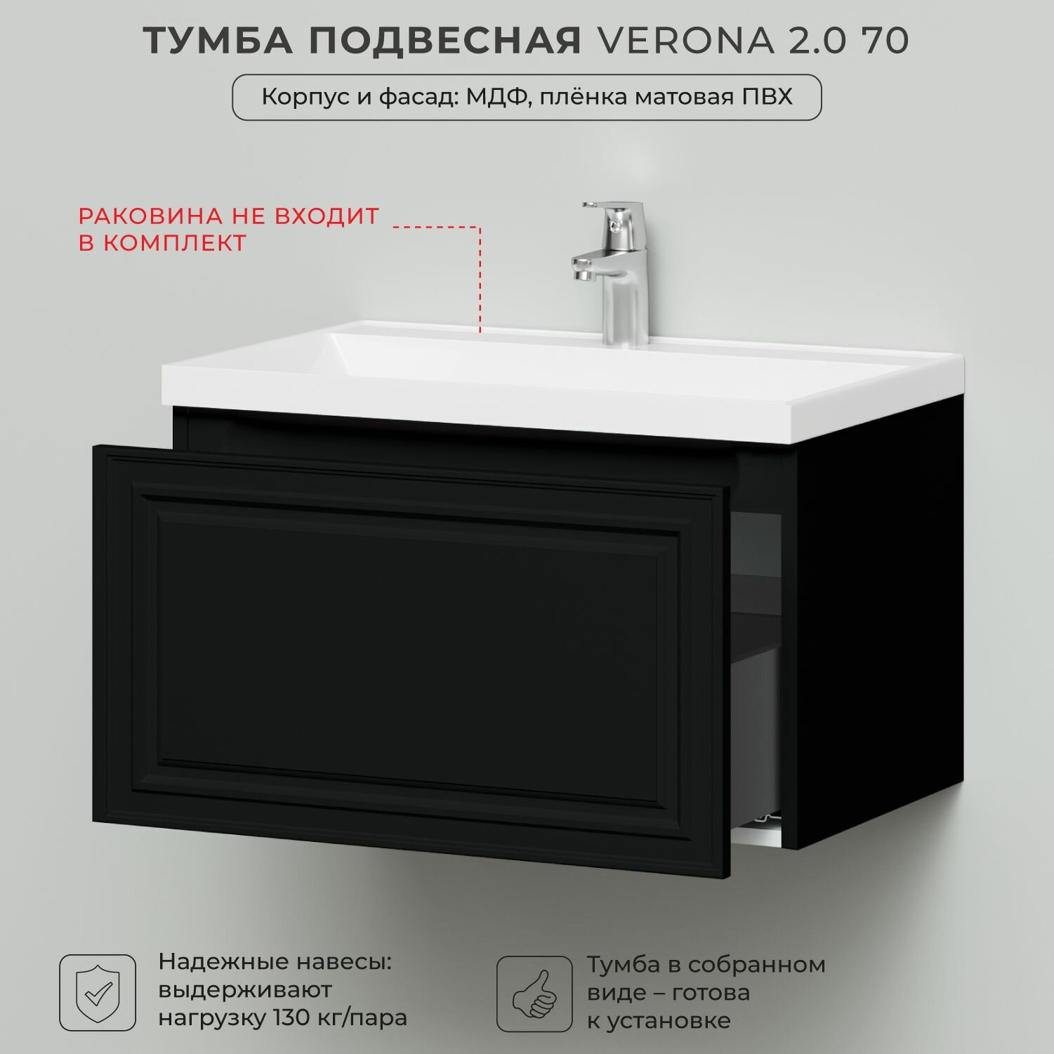 Тумба под раковину в ванную, тумба для ванной Итана Verona 2.0 70 694х446х400 Черный софт: сравнение цен, характеристики, фото, актуальное наличие и цены.