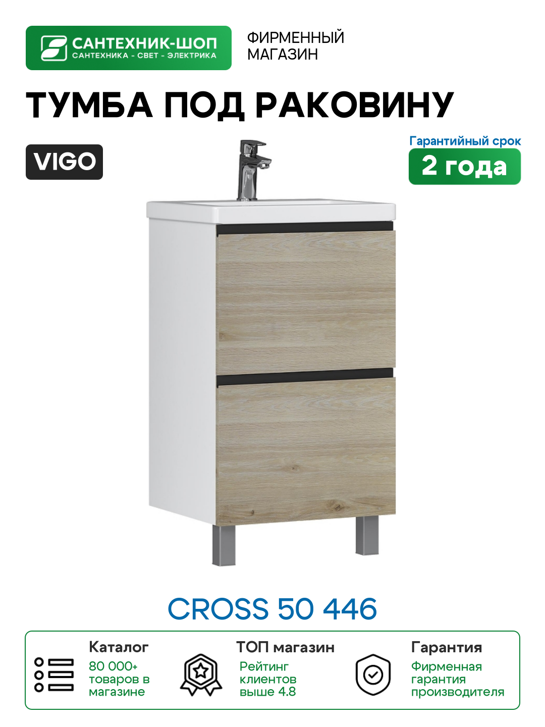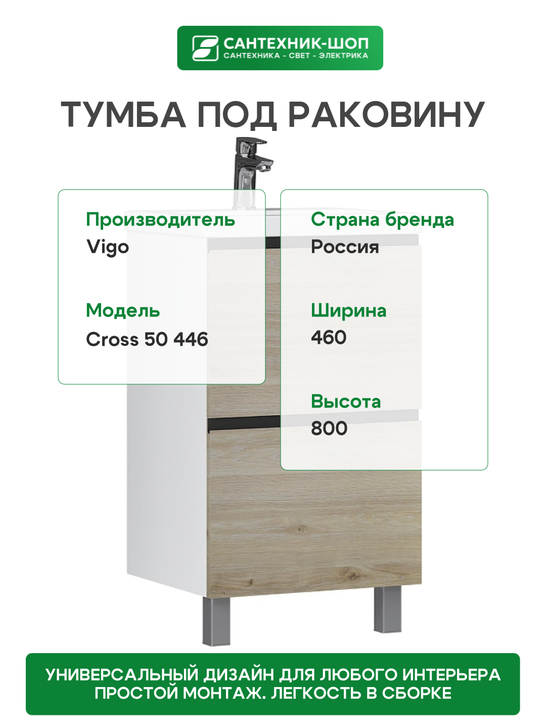 Тумба под раковину Vigo Cross 50 446 цвет Дуб давос натуральный Белый: сравнение цен, характеристики, фото, актуальное наличие и цены.