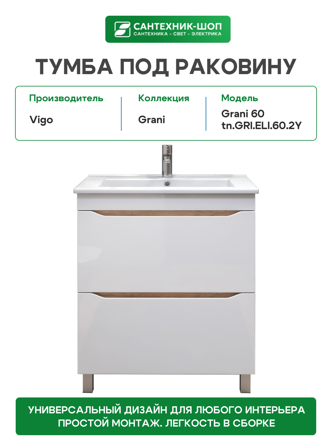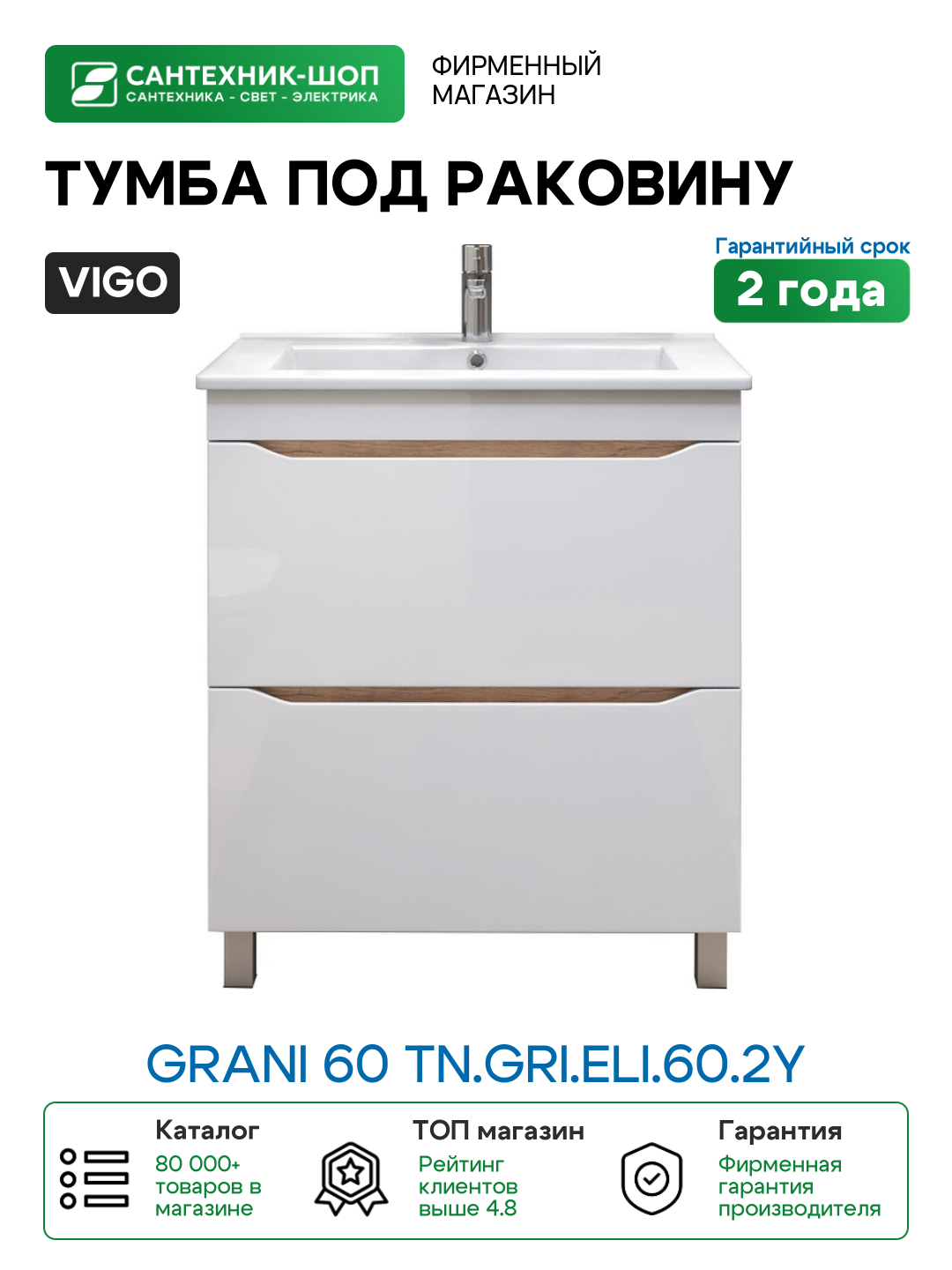 Тумба под раковину Vigo Grani 60 tn. GRI. ELI.60.2Y цвет Белый Дуб золотой: сравнение цен, характеристики, фото, актуальное наличие и цены.