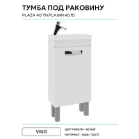 Купить Тумба под раковину Vigo Plaza 40 tn. PLA. MIR.40.1D Белая МДФ / ЛДСП белый с дверками с доставкой по всей России.