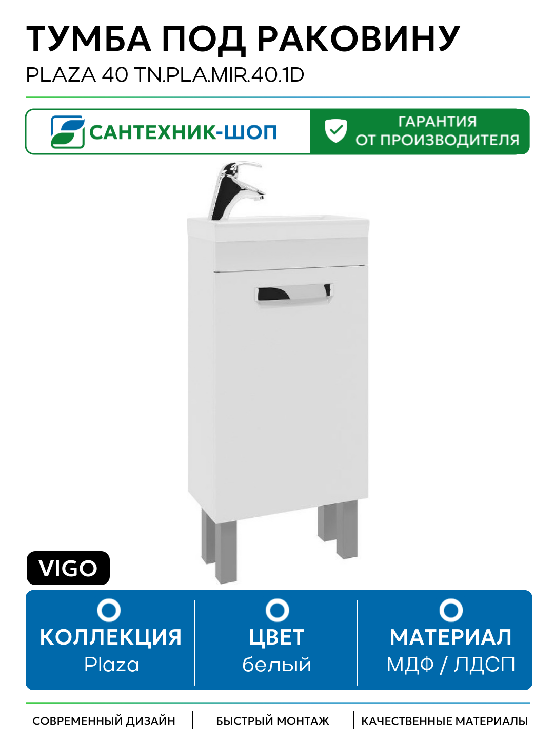 Тумба под раковину Vigo Plaza 40 tn. PLA. MIR.40.1D Белая МДФ / ЛДСП белый с дверками: сравнение цен, характеристики, фото, актуальное наличие и цены.