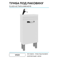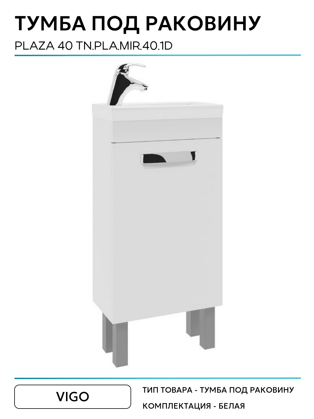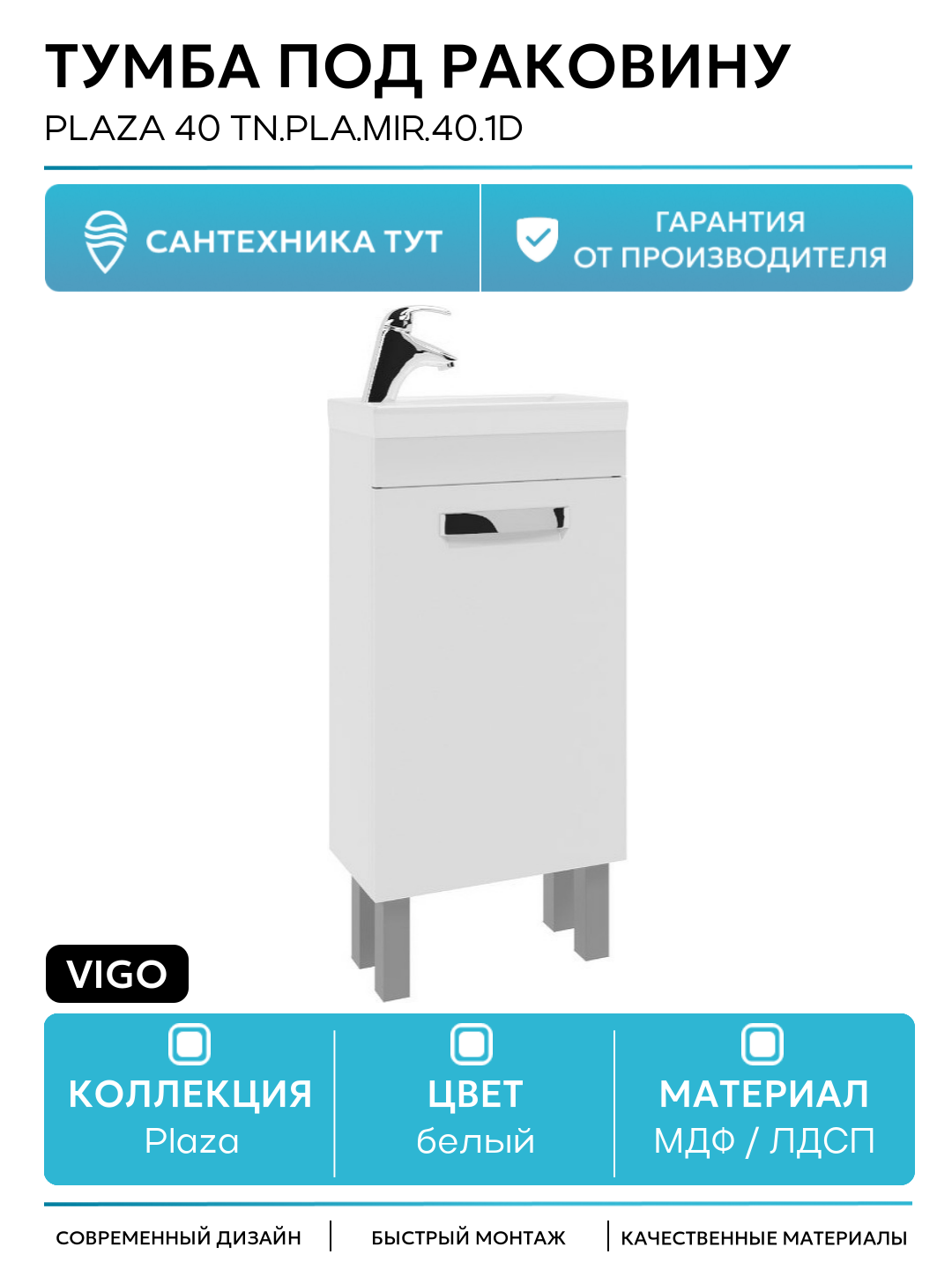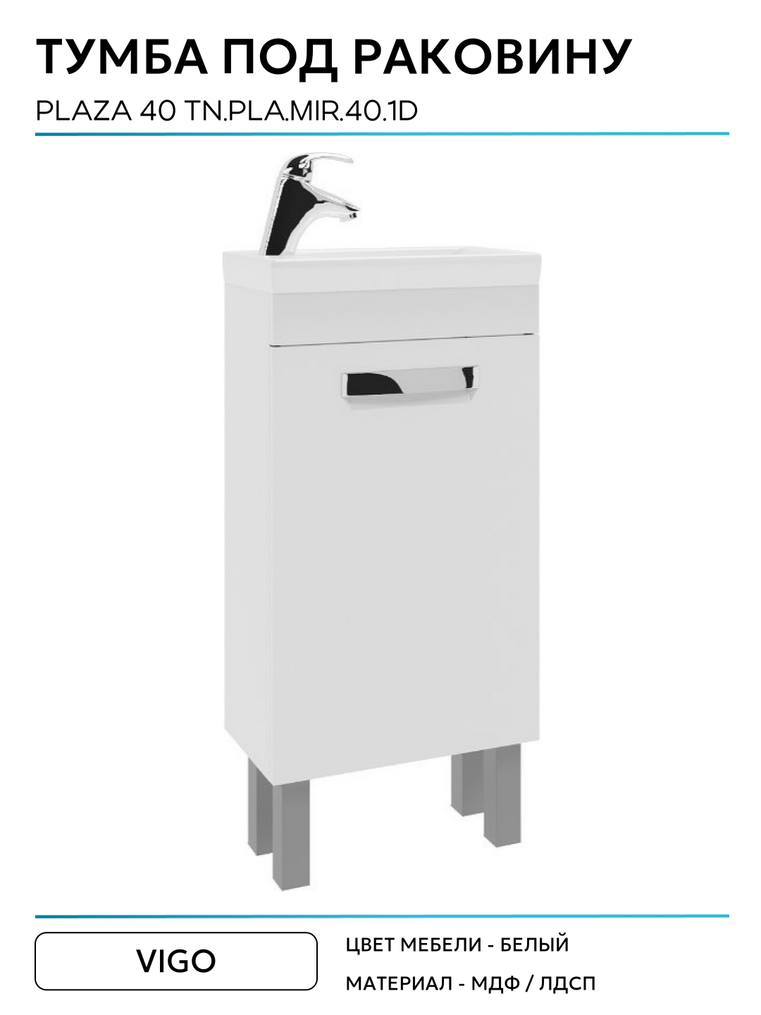Тумба под раковину Vigo Plaza 40 tn. PLA. MIR.40.1D Белая МДФ / ЛДСП белый с дверками: сравнение цен, характеристики, фото, актуальное наличие и цены.
