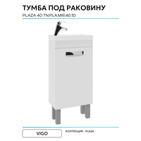 Тумба под раковину Vigo Plaza 40 tn. PLA. MIR.40.1D Белая МДФ / ЛДСП белый с дверками