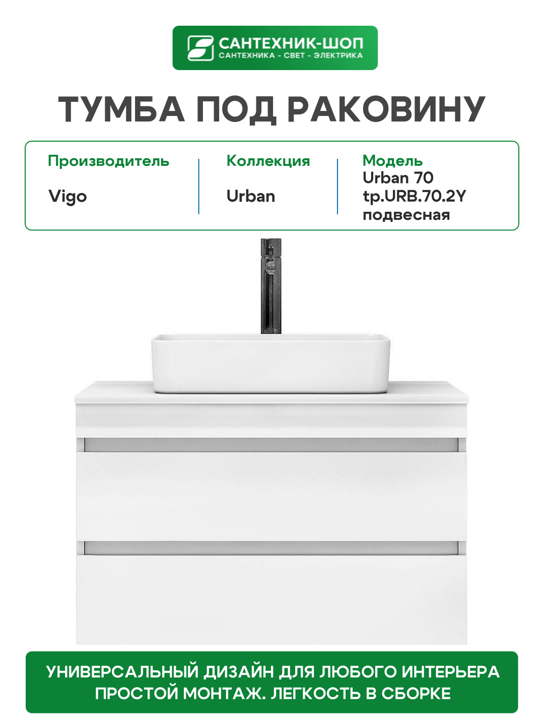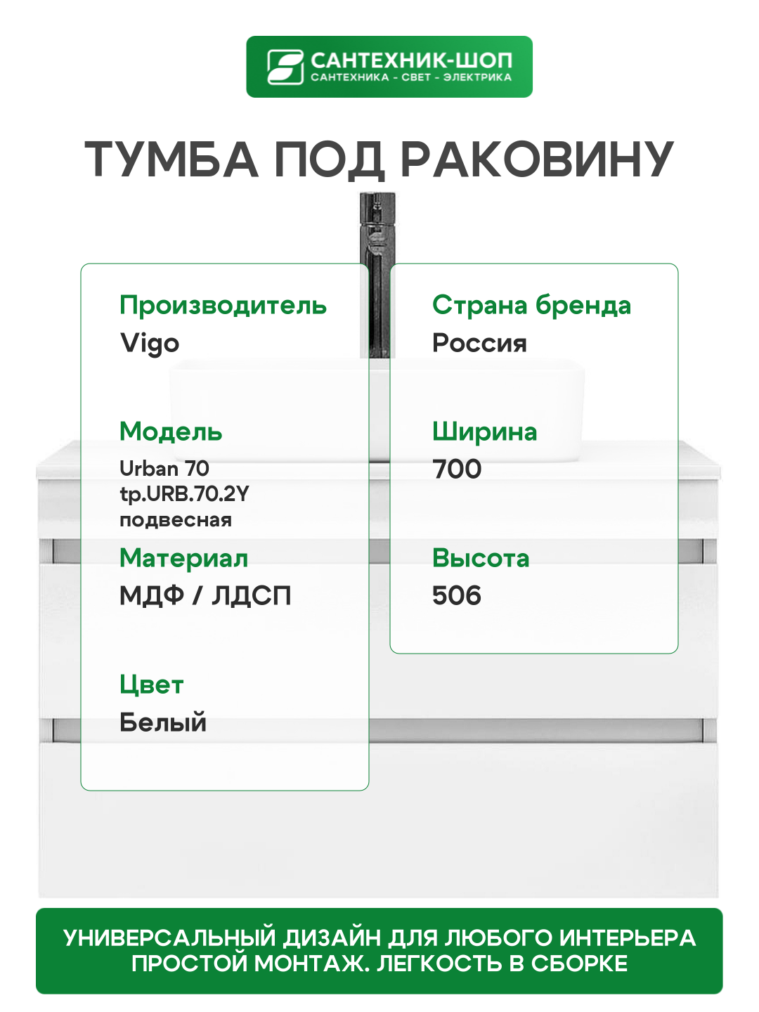 Купить Тумба под раковину Vigo Urban 70 tp. URB.70.2Y подвесная Белая МДФ / ЛДСП белый с ящиками Россия с доставкой по всей России. Тумба под раковину Vigo Urban 70 tp. URB.70.2Y подвесная Белая МДФ / ЛДСП белый с ящиками Россия: сравнение цен, характеристики, фото, актуальное наличие и цены.