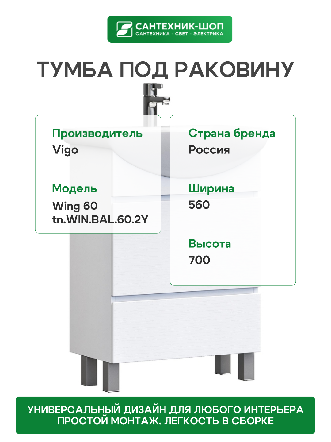 Тумба под раковину Vigo Wing 60 tn. WIN. BAL.60.2Y цвет Белый: сравнение цен, характеристики, фото, актуальное наличие и цены.