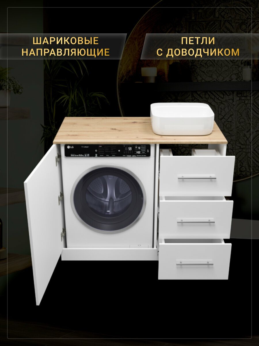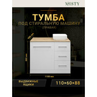 Тумба для ванной под стиральную машину Мисти Респект 110 с 3 ящ. правая Артикул: Э-Рес01110-13ЯП --- ! Раковина НЕ входит в стоимость товара Комплектуется раковиной Santek Одри 42x42 (приобретается отдельно)