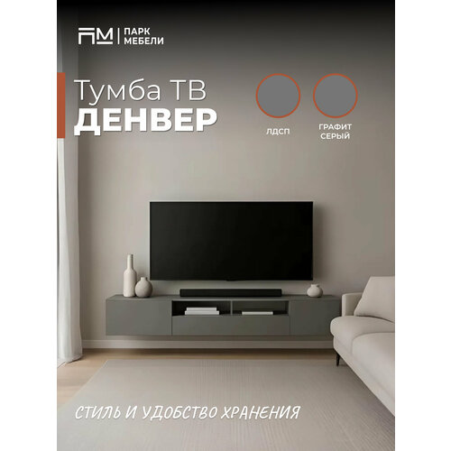 Тумба под телевизор «Денвер» , напольная/подвесная, серый цвет, размеры 201х34,6х35,5: сравнение цен, характеристики, фото, актуальное наличие и цены.