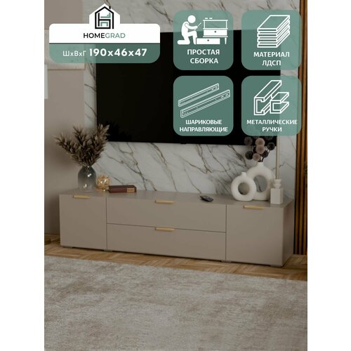 Тумба под ТВ HOMEGRAD Fiesta Lite 190 см в цвете Кашемир – это большая и стильная ТВ-тумба, созданная для современных гостиных, где важен одновременно красивый вид и удобное хранение.