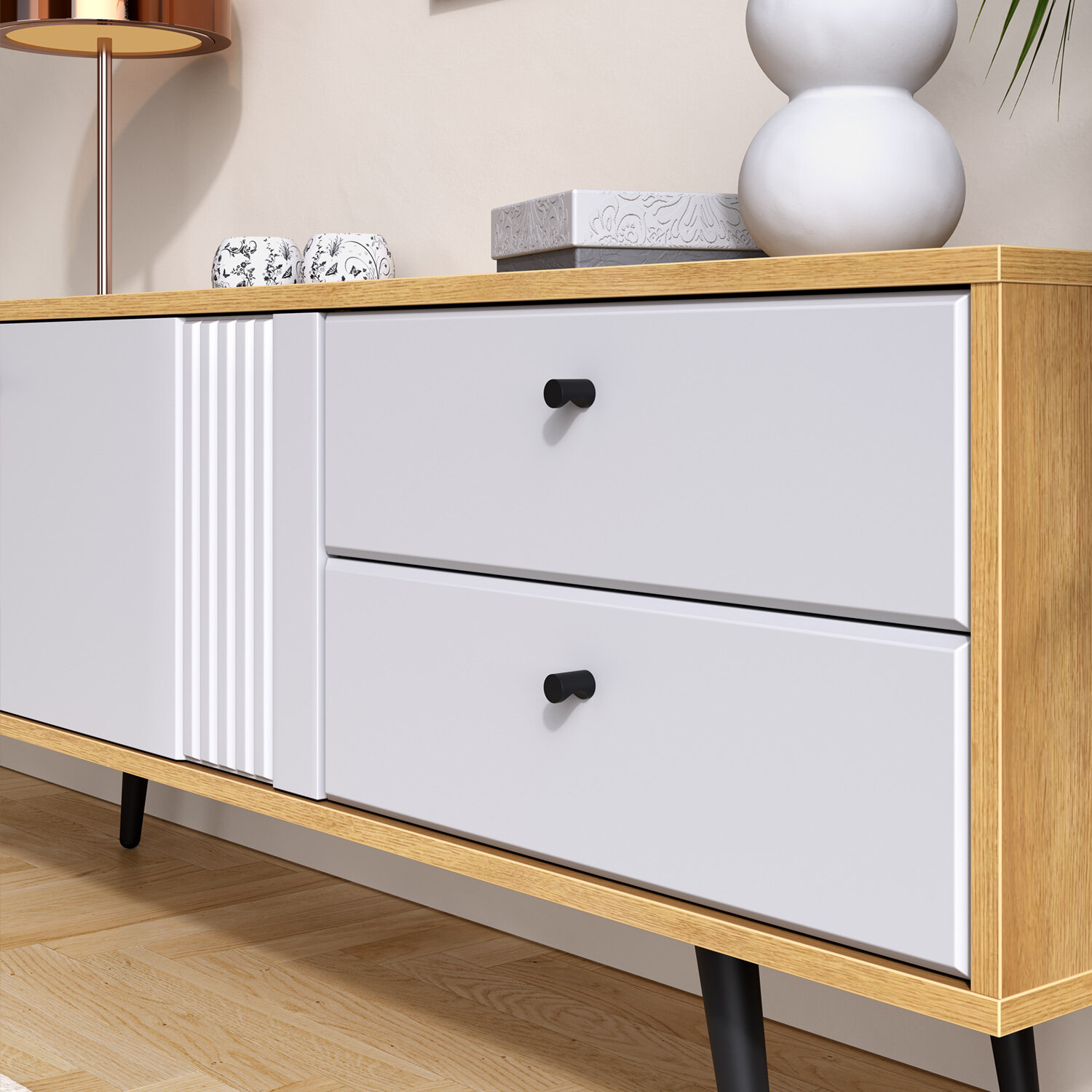 Тумба оснащена двумя ящиками с доводчиками, которые обеспечивают плавное и бесшумное закрывание. Максимальная нагрузка на каждый ящик составляет 5 кг, что позволяет хранить в них различные предметы.