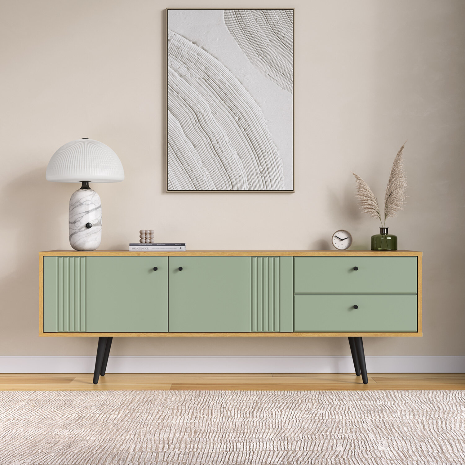 Купить Тумба под телевизор Кураж Вега Саксония 152.2х40х53,6 см зеленая, с ящиками с доставкой по всей России.