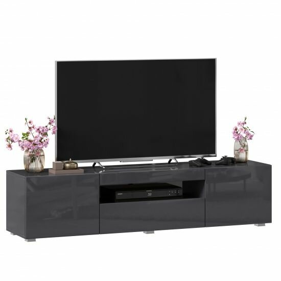 Тумба под телевизор напольная Бруклин, 160х36.6х36 см, 3 ящика, 6 полок, Оникс серый глянец: сравнение цен, характеристики, фото, актуальное наличие и цены.