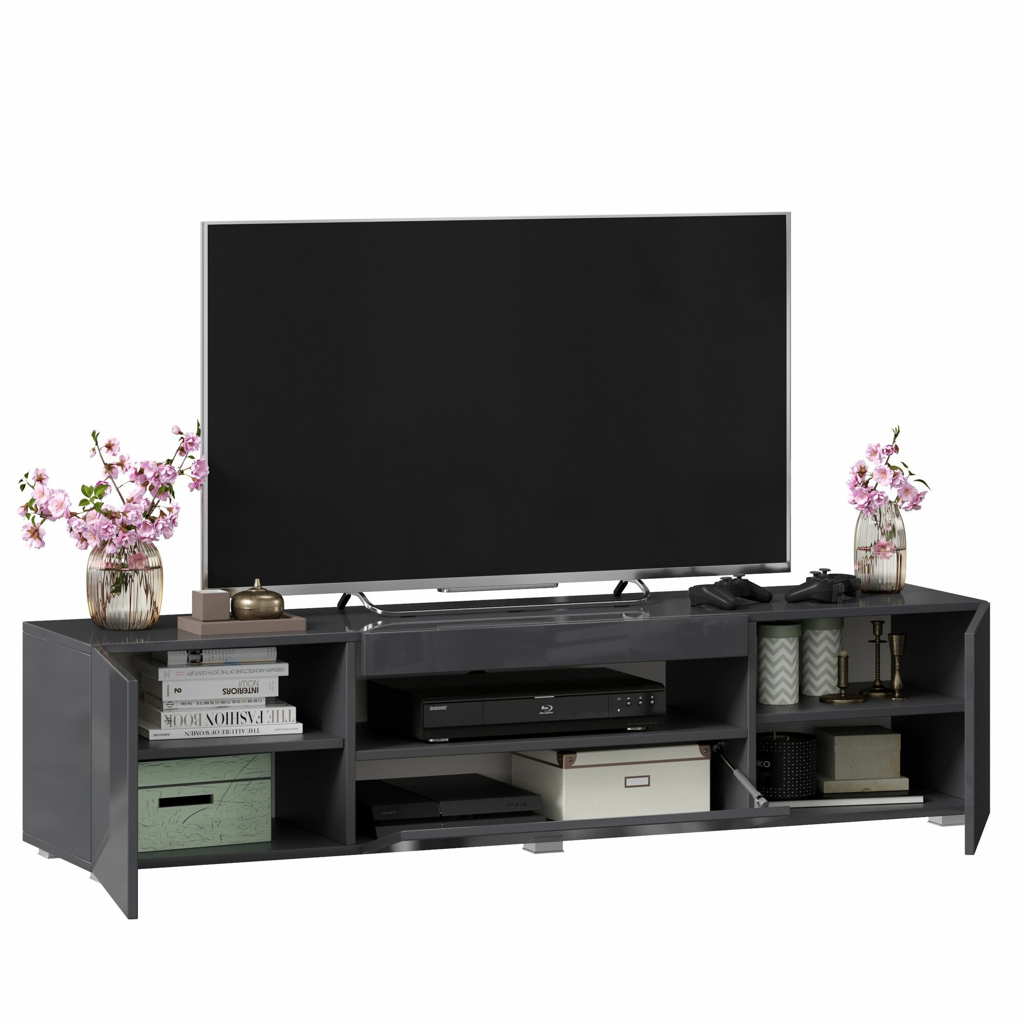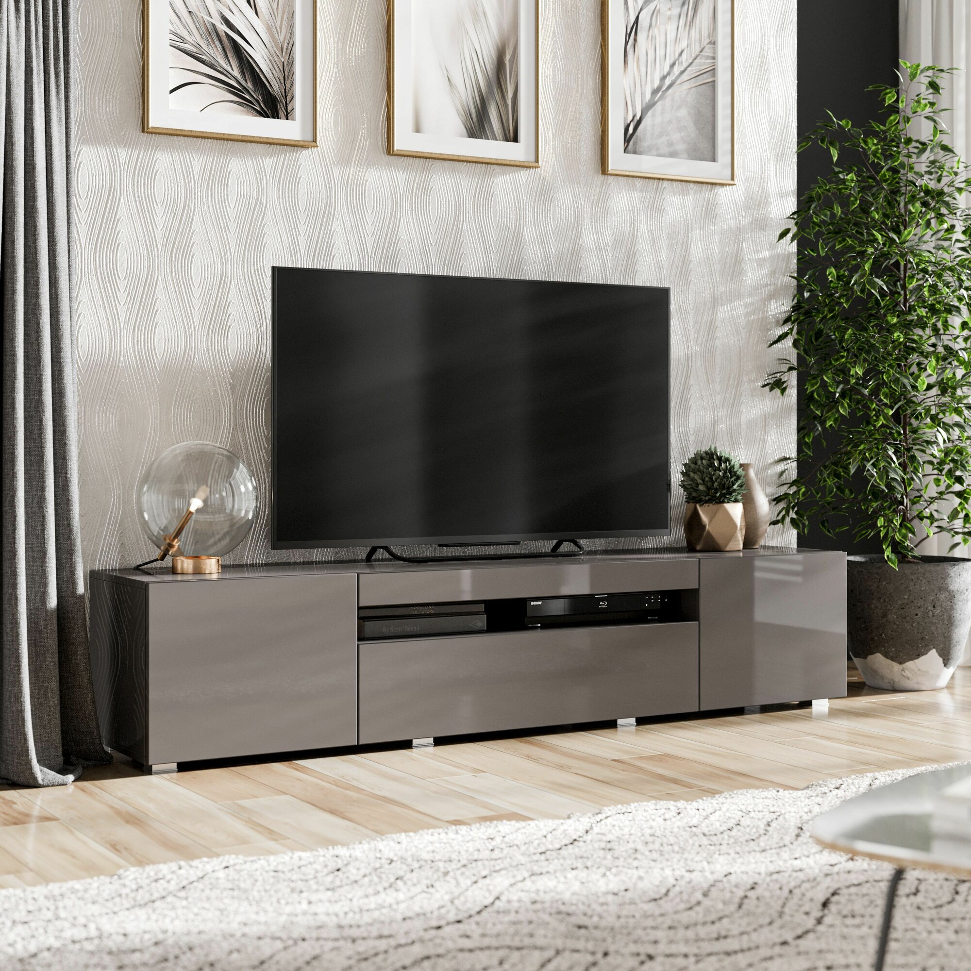 Купить Тумба под телевизор напольная Бруклин, 160х36.6х36 см, 3 ящика, 6 полок, Оникс серый глянец с доставкой по всей России.