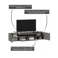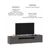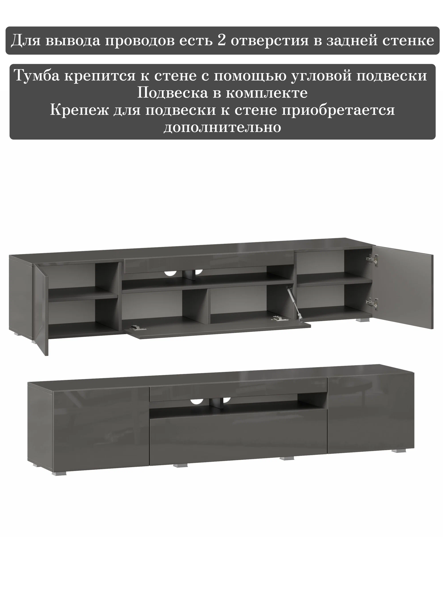 Тумба под телевизор напольная Бруклин, 180х36.6х36 см, 3 ящика, 6 полок, Оникс серый глянец, исполнение 2: сравнение цен, характеристики, фото, актуальное наличие и цены.