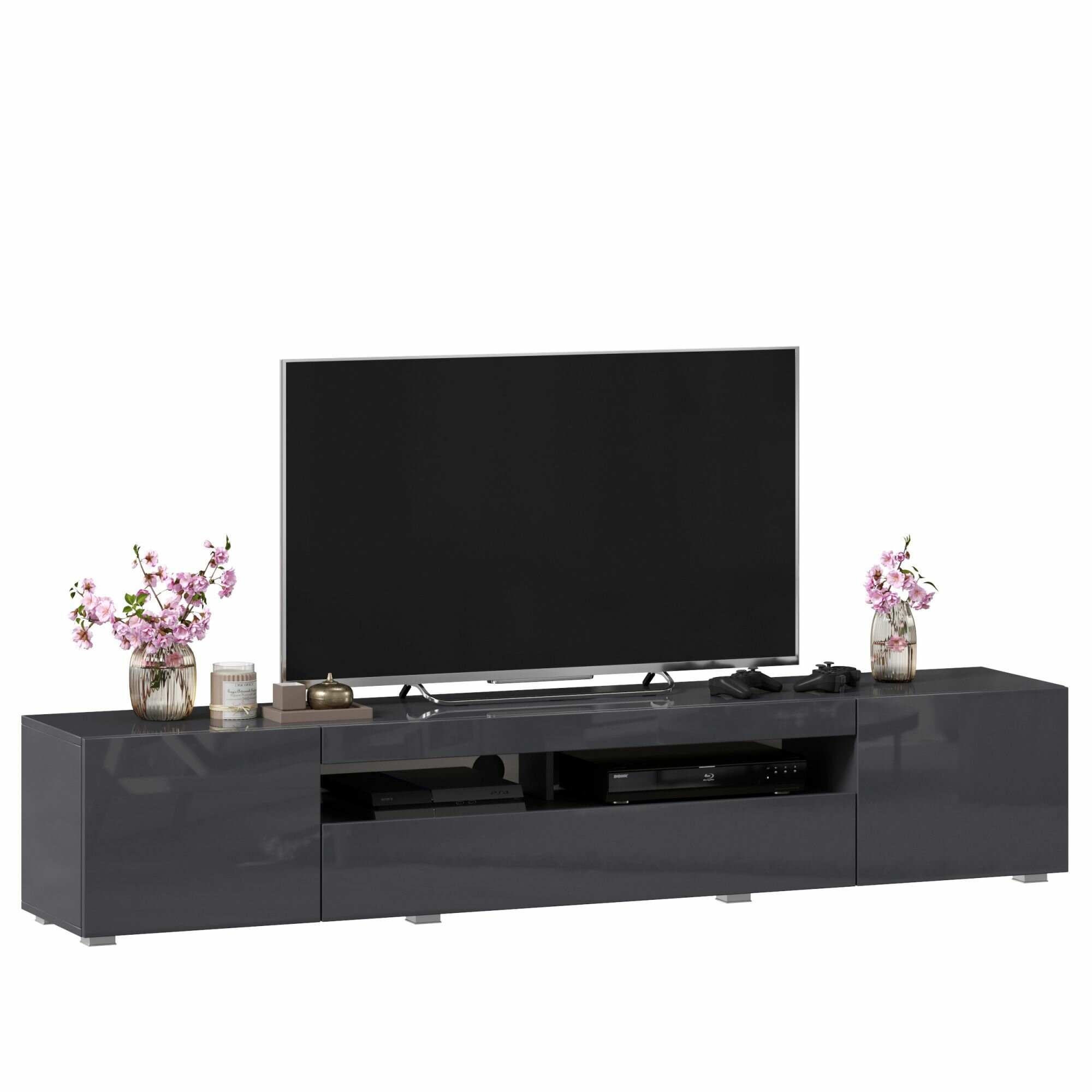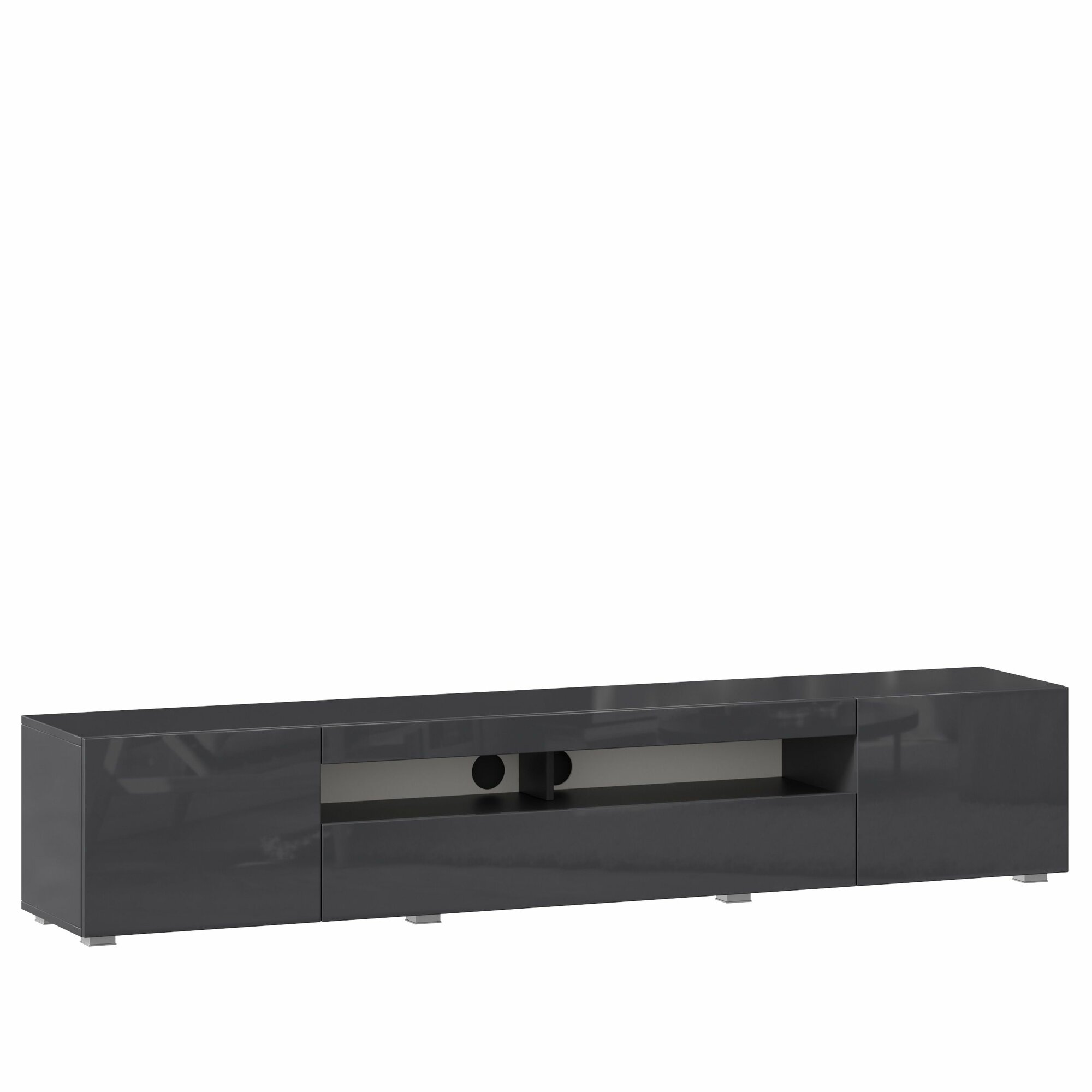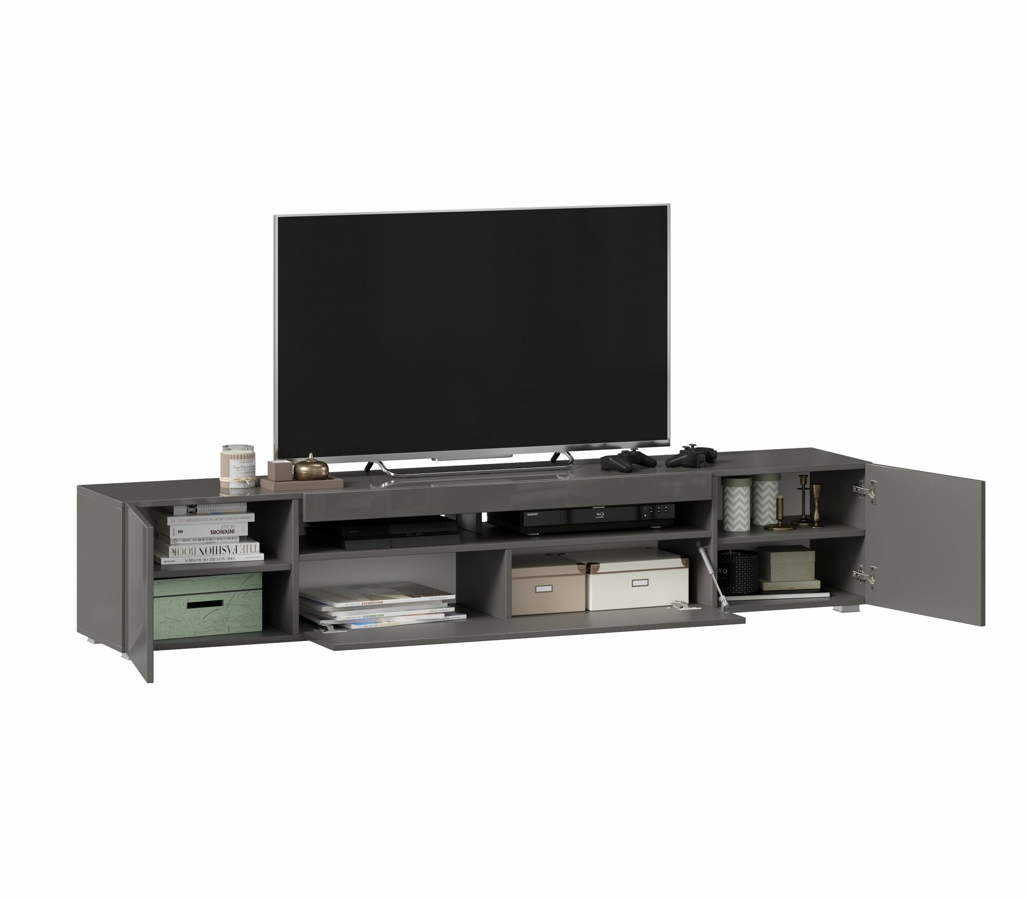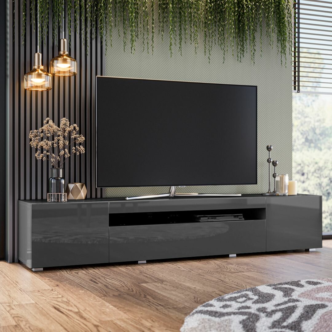 Купить Тумба под телевизор напольная подвесная Бруклин, 200х36.6х36 см, 3 ящика, 6 полок, Оникс серый глянец с доставкой по всей России.
