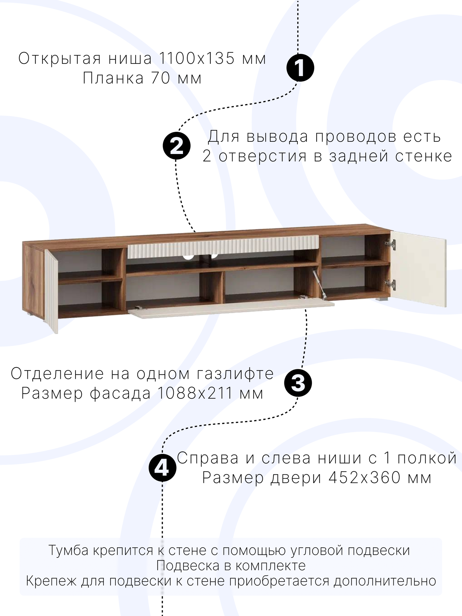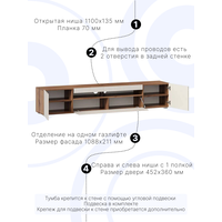 Тумба под телевизор напольная подвесная Нью-Йорк, 220х36.6х38 см, 3 ящика, Дуб Кастелло Бренди/Кашемир глянец исп. 3: сравнение цен, характеристики, фото, актуальное наличие и цены.