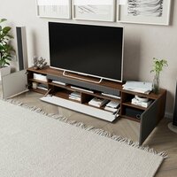 Тумба под телевизор напольная Нью-Йорк, 220х36.6х38 см, 3 ящика, 6 полок, Дуб Кастелло Бренди/Оникс серый глянец исп. 5: сравнение цен, характеристики, фото, актуальное наличие и цены.
