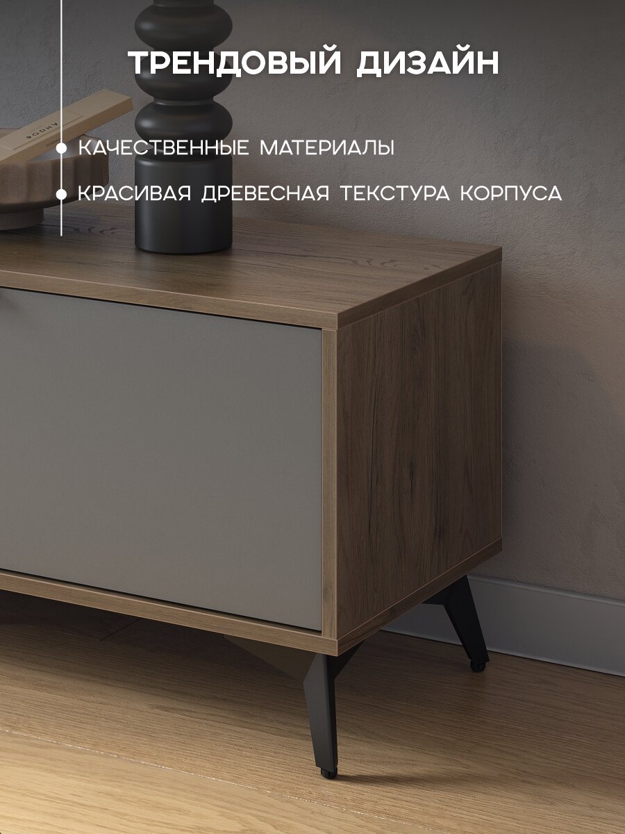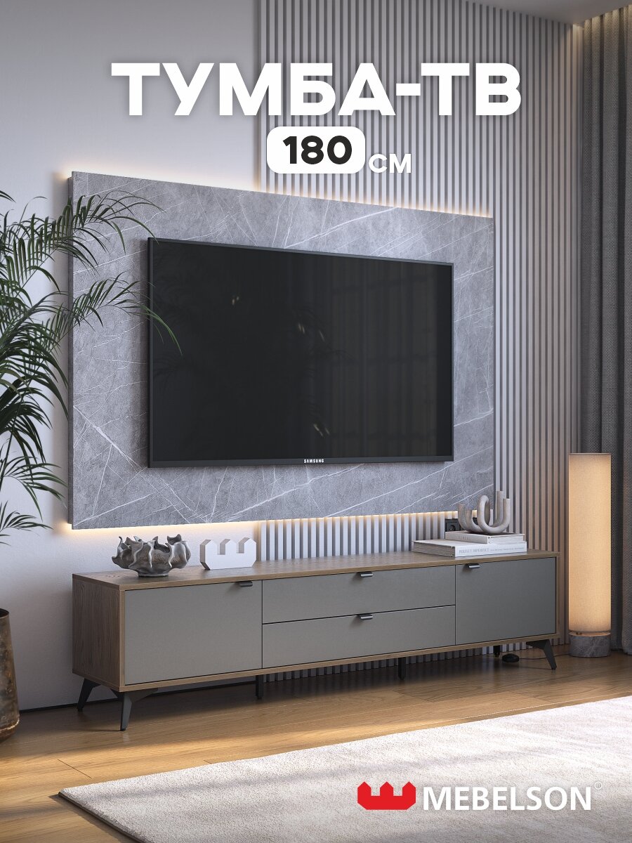 Тумба под телевизор «Марк 180», ЛДСП Дуб гудзон шоколадный/графит, 180*36*44 см, MEBELSON: сравнение цен, характеристики, фото, актуальное наличие и цены.