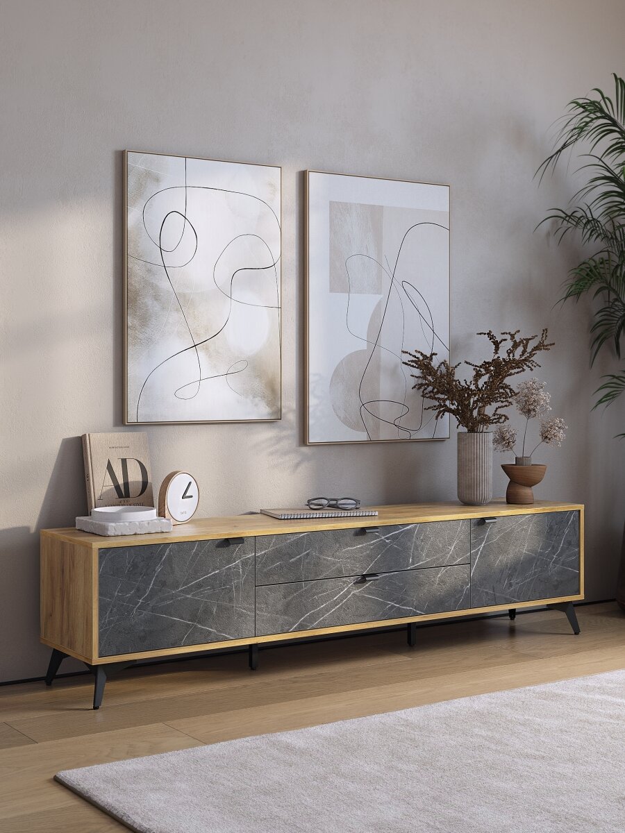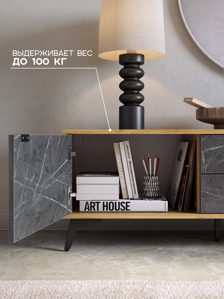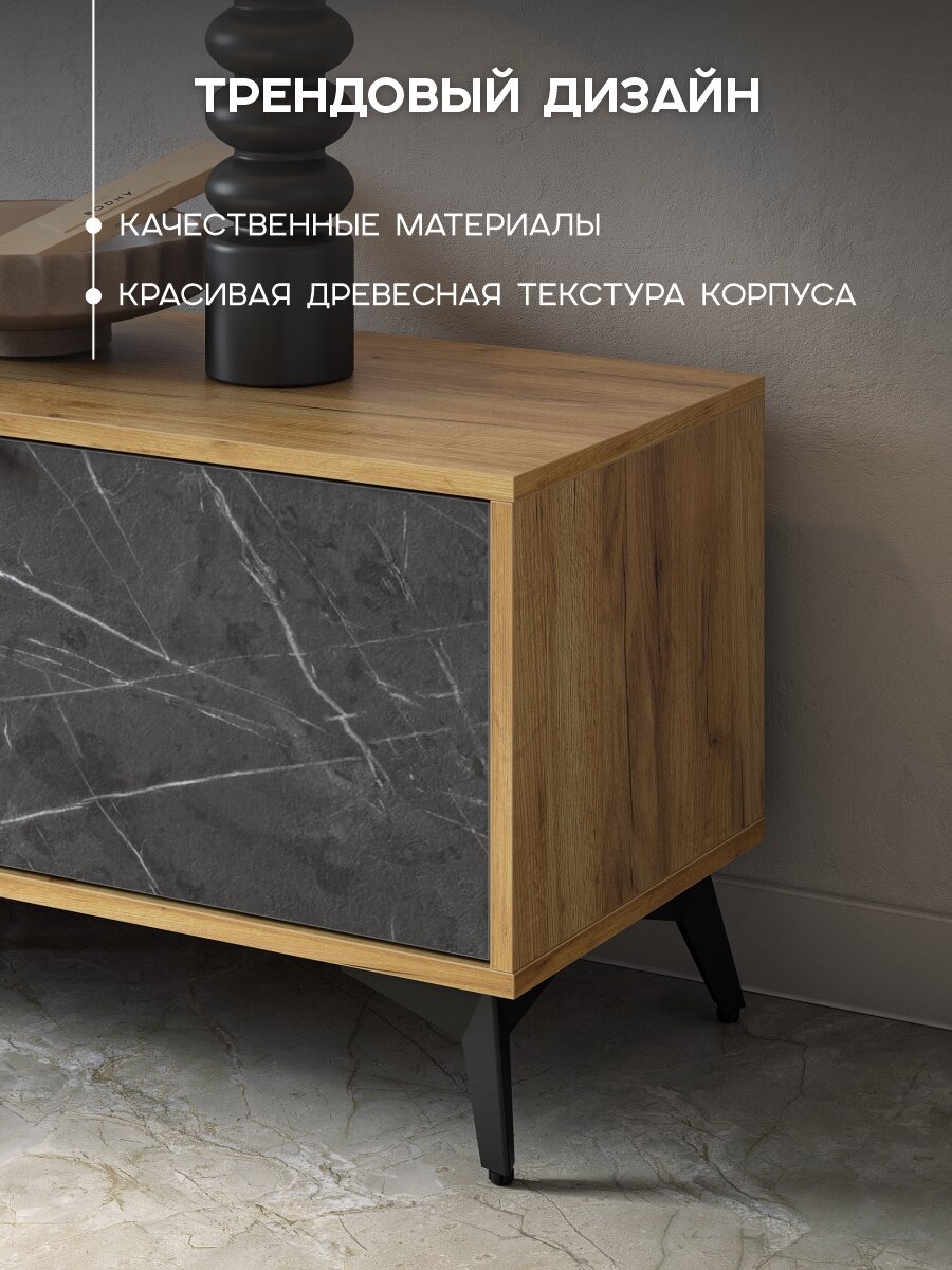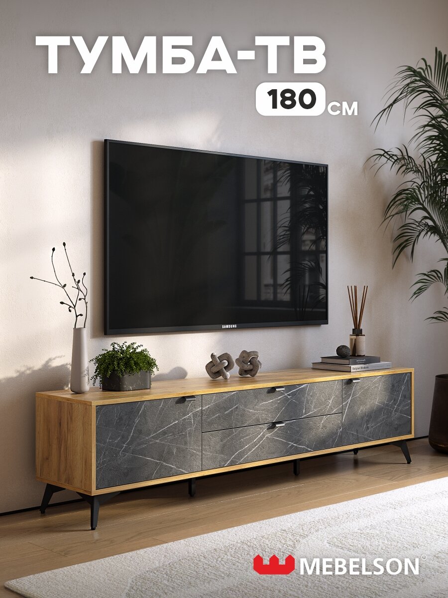 Тумба под телевизор «Марк 180», ЛДСП Дуб крафт золотой/мрамор пьетра графит, 180*36*44 см, MEBELSON: сравнение цен, характеристики, фото, актуальное наличие и цены.